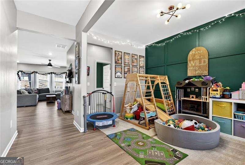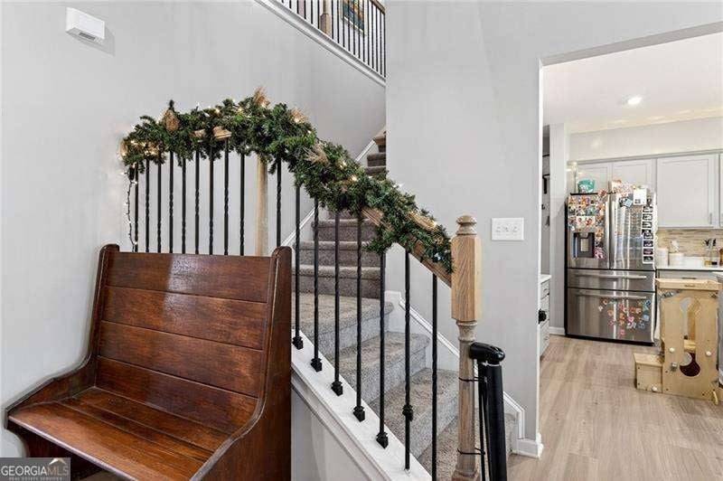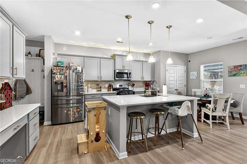 Welcome Home to this nearly new well-maintained 4-bedroom, 2.5-bath home offering 2,600 sq ft of comfortable living space. Located on a quiet, family-friendly street, this property includes a charming backyard shed-perfect for storing lawn equipment, tools, or seasonal decor. The newly extended back patio provides an ideal space for outdoor entertaining, grilling, or relaxing. Inside, the main level has been thoughtfully updated, including a stylish accent wall in the dining room. The living room features a cozy gas fireplace and opens seamlessly into the kitchen, which offers granite countertops, custom backsplash, upgraded cabinet and sink hardware, and durable LVP flooring. All four bedrooms are located upstairs, where you'll also find carpet throughout the upper level for added comfort. The spacious primary suite includes an upgraded walk-in shower for a touch of luxury. The home's exterior is finished with durable Hardie Plank siding, providing long-lasting quality and curb appeal. Conveniently situated less than a mile from downtown Ball Ground and offering quick access to I-575, this home is close to dining, shops, and local attractions. A warm, welcoming community of young families makes this the perfect place to call home.