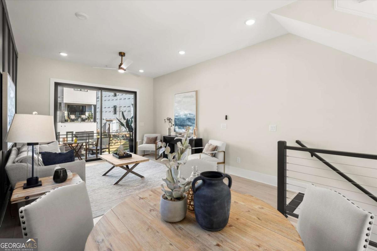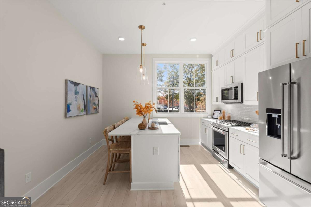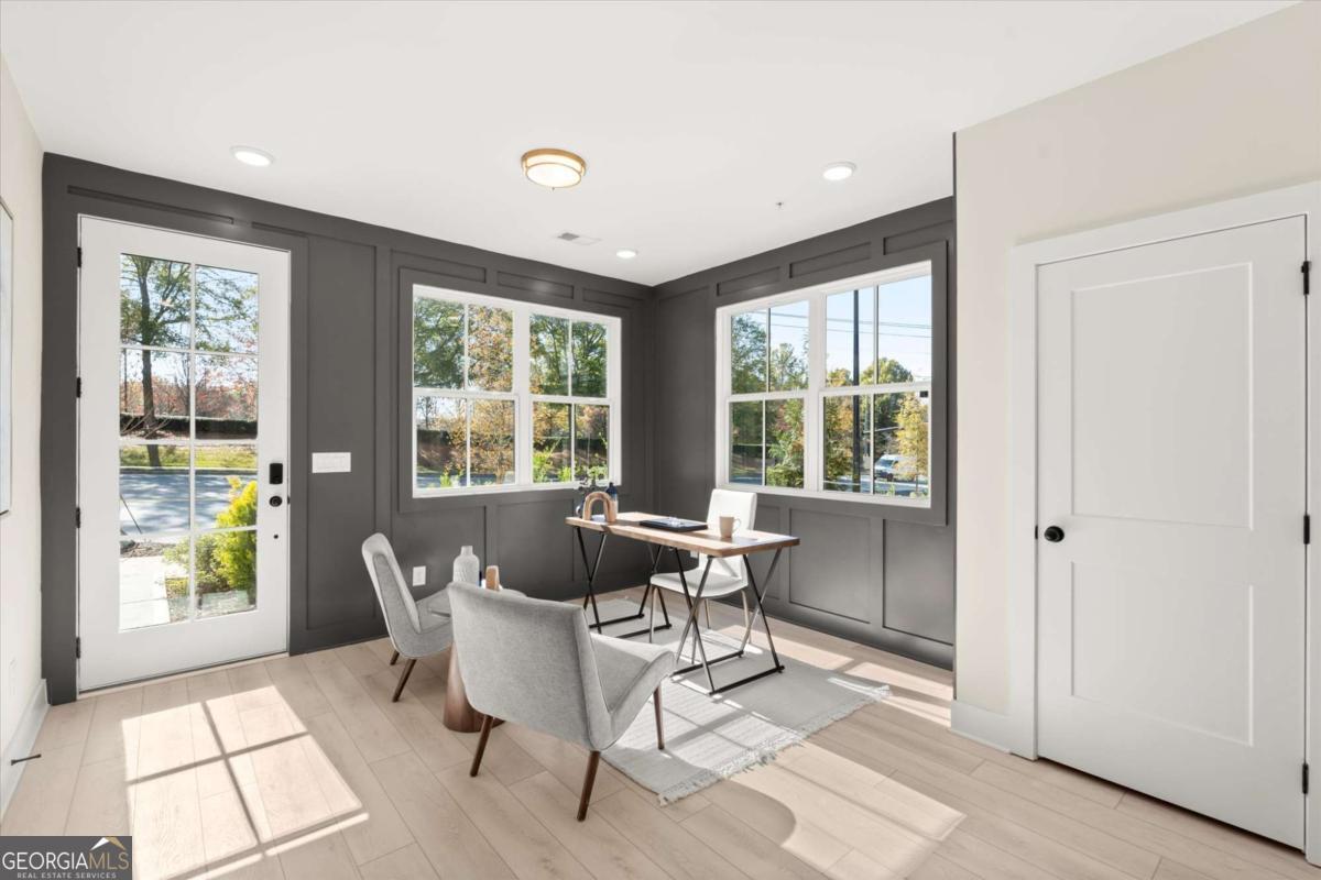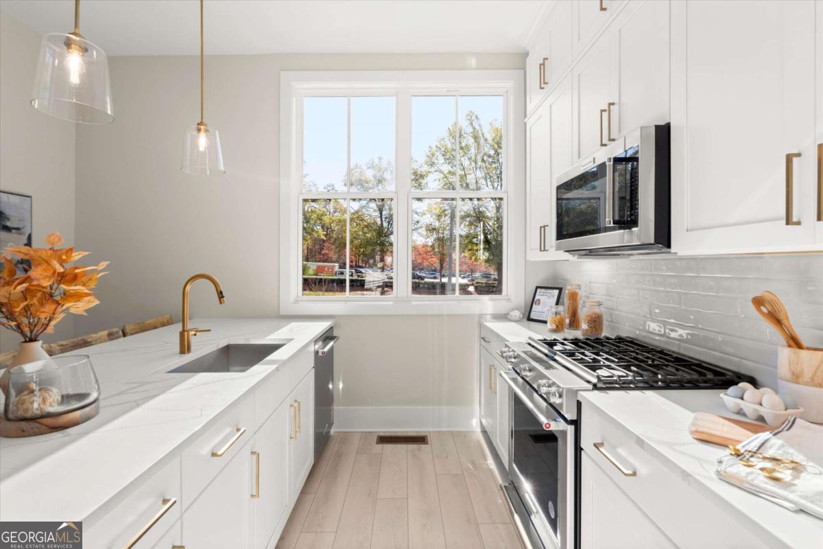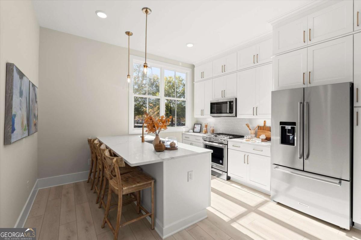 Special Financing Available! Enjoy interest rates as low as 4.75% for qualified buyers who close before year-end. Welcome to The Anniston (End-Unit) at The Gathering, a contemporary townhome offering 1,644 sq. ft. of stylish, modern living with 2 bedrooms, a flex space, and 3 full baths. Thoughtfully designed and professionally curated, this residence showcases elevated finishes and refined details throughout. Designed for comfort and versatility, the home features numerous upgrades, including custom trim accents in the flex room, living room, and primary bedroom. The terrace level features a flexible space ideal for a home office, gym, or guest area, complete with a full bath and access to the two-car garage. On the main level, enjoy 10-foot ceilings and an open-concept layout connecting the kitchen, dining, and living areas. The gourmet kitchen includes KitchenAid appliances, quartz countertops, and maple cabinetry, opening to a covered deck for relaxing or entertaining. Upstairs, the primary suite offers a spacious walk-in closet and a spa-inspired bath with dual vanities, quartz counters, and a glass-enclosed shower. A secondary bedroom with its own full bath provides comfort and privacy for guests or family. Located in The Gathering, just minutes from downtown Alpharetta, Avalon, and top-rated schools, residents enjoy direct access to the Alpha Loop plus community amenities including a garden, firepit, and dog park. Even more exciting-plans are underway for a future mixed-use development featuring restaurants, shops, and entertainment, creating an urban lifestyle experience in a suburban setting with unmatched convenience. This home is move-in ready-schedule your tour today! Photos are a representation of actual home. Agent on-site Mon, Tues & Sat (10-6) and Wed & Sun (1-6).