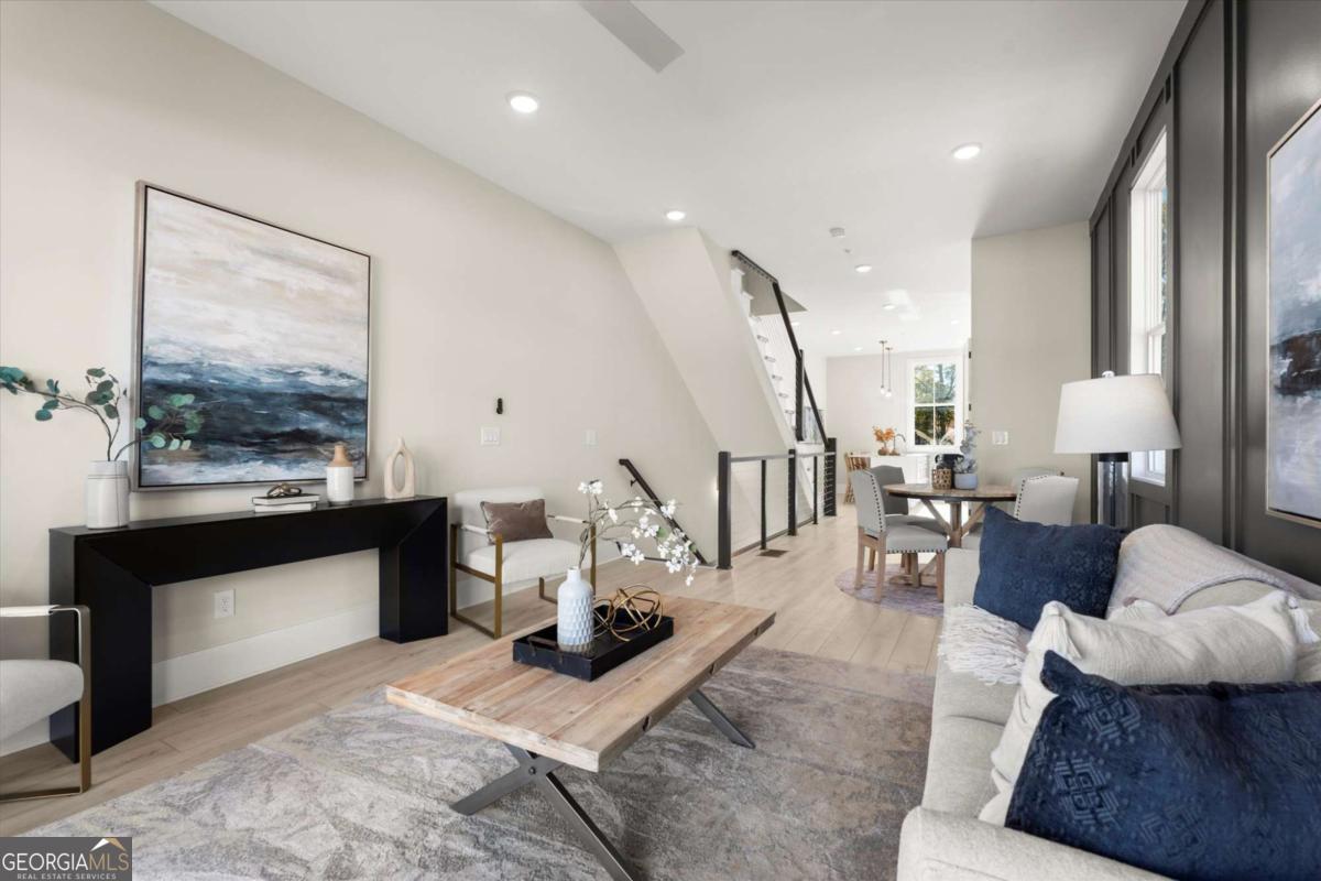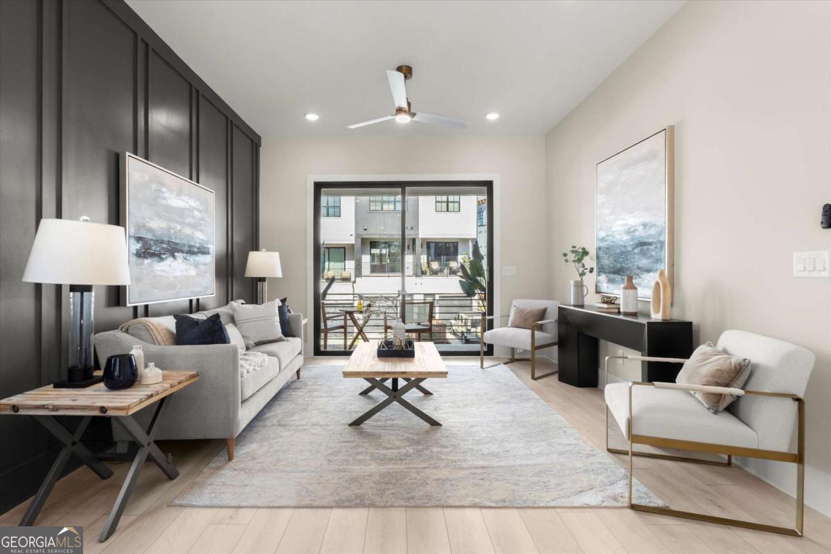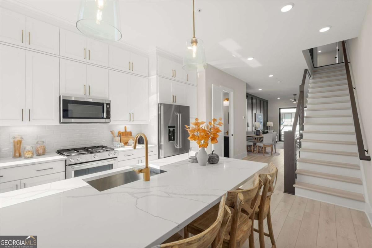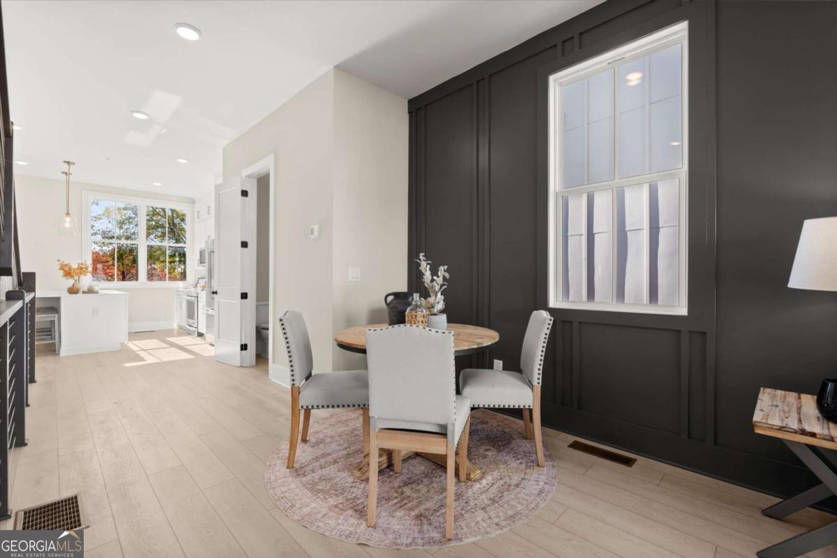 Special Financing Available! Enjoy interest rates as low as 4.75% for qualified buyers who close before year-end. Welcome to The Anniston (End-Unit) at The Gathering, a contemporary townhome offering 1,644 sq. ft. of stylish, modern living with 2 bedrooms, a flex space, and 3 full baths. Thoughtfully designed and professionally curated, this residence showcases elevated finishes and refined details throughout. Designed for comfort and versatility, the home features numerous upgrades, including custom trim accents in the flex room, living room, and primary bedroom. The terrace level features a flexible space ideal for a home office, gym, or guest area, complete with a full bath and access to the two-car garage. On the main level, enjoy 10-foot ceilings and an open-concept layout connecting the kitchen, dining, and living areas. The gourmet kitchen includes KitchenAid appliances, quartz countertops, and maple cabinetry, opening to a covered deck for relaxing or entertaining. Upstairs, the primary suite offers a spacious walk-in closet and a spa-inspired bath with dual vanities, quartz counters, and a glass-enclosed shower. A secondary bedroom with its own full bath provides comfort and privacy for guests or family. Located in The Gathering, just minutes from downtown Alpharetta, Avalon, and top-rated schools, residents enjoy direct access to the Alpha Loop plus community amenities including a garden, firepit, and dog park. Even more exciting-plans are underway for a future mixed-use development featuring restaurants, shops, and entertainment, creating an urban lifestyle experience in a suburban setting with unmatched convenience. This home is move-in ready-schedule your tour today! Photos are a representation of actual home. Agent on-site Mon, Tues & Sat (10-6) and Wed & Sun (1-6).