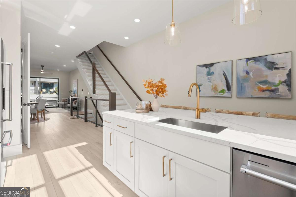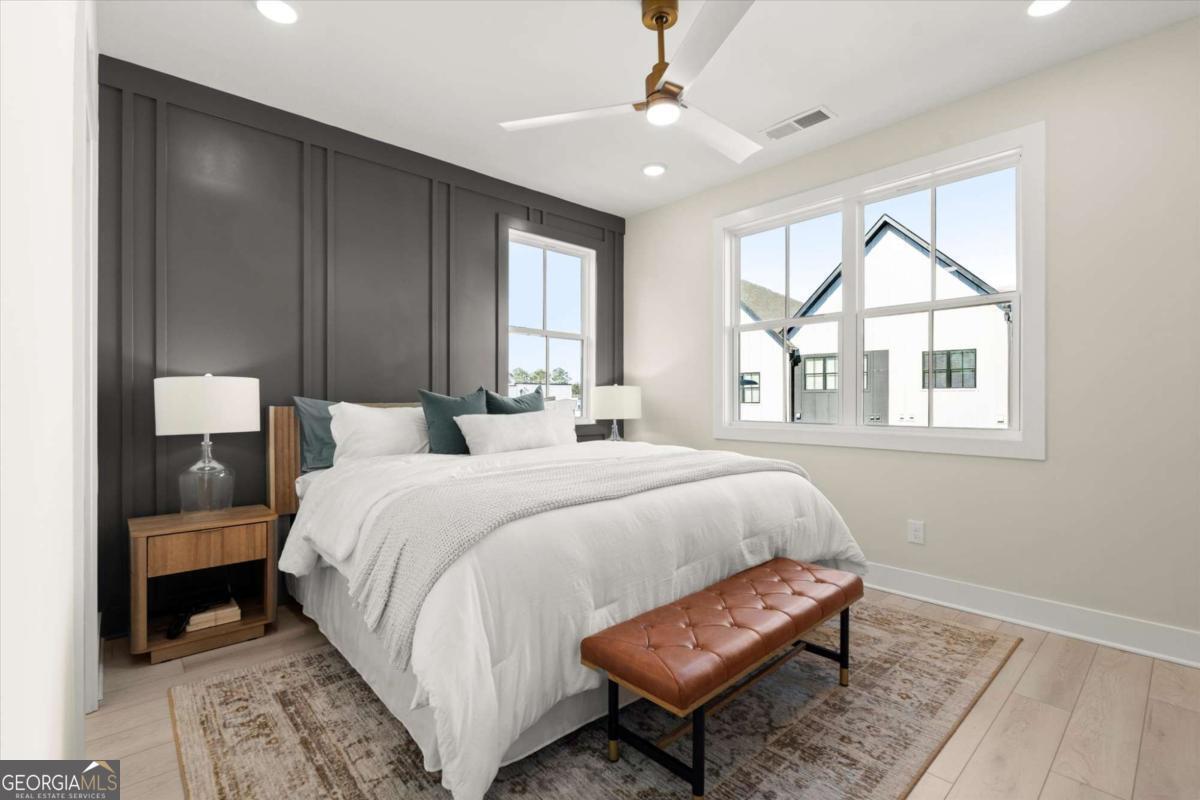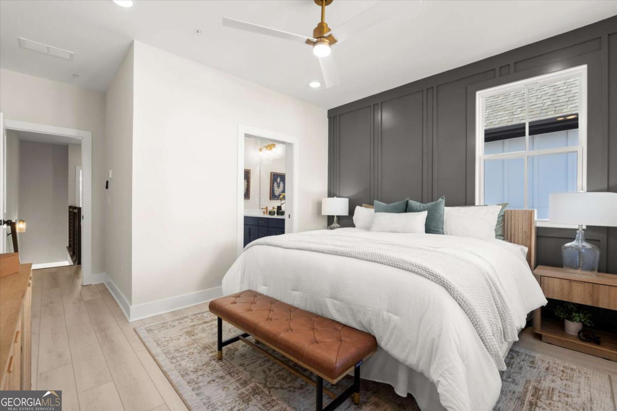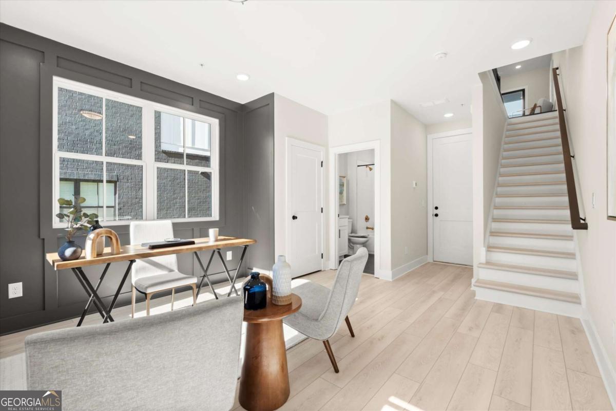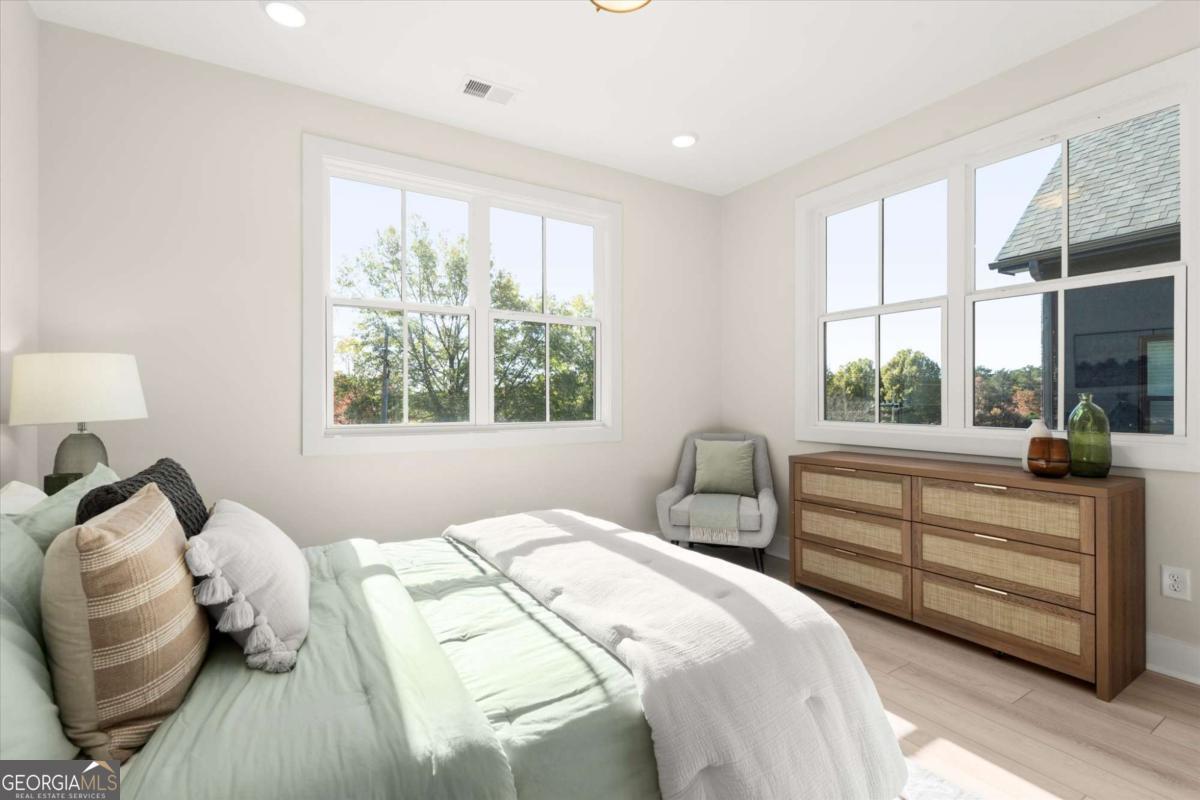 Special Financing Available! Enjoy interest rates as low as 4.75% for qualified buyers who close before year-end. Welcome to The Anniston (End-Unit) at The Gathering, a contemporary townhome offering 1,644 sq. ft. of stylish, modern living with 2 bedrooms, a flex space, and 3 full baths. Thoughtfully designed and professionally curated, this residence showcases elevated finishes and refined details throughout. Designed for comfort and versatility, the home features numerous upgrades, including custom trim accents in the flex room, living room, and primary bedroom. The terrace level features a flexible space ideal for a home office, gym, or guest area, complete with a full bath and access to the two-car garage. On the main level, enjoy 10-foot ceilings and an open-concept layout connecting the kitchen, dining, and living areas. The gourmet kitchen includes KitchenAid appliances, quartz countertops, and maple cabinetry, opening to a covered deck for relaxing or entertaining. Upstairs, the primary suite offers a spacious walk-in closet and a spa-inspired bath with dual vanities, quartz counters, and a glass-enclosed shower. A secondary bedroom with its own full bath provides comfort and privacy for guests or family. Located in The Gathering, just minutes from downtown Alpharetta, Avalon, and top-rated schools, residents enjoy direct access to the Alpha Loop plus community amenities including a garden, firepit, and dog park. Even more exciting-plans are underway for a future mixed-use development featuring restaurants, shops, and entertainment, creating an urban lifestyle experience in a suburban setting with unmatched convenience. This home is move-in ready-schedule your tour today! Photos are a representation of actual home. Agent on-site Mon, Tues & Sat (10-6) and Wed & Sun (1-6).