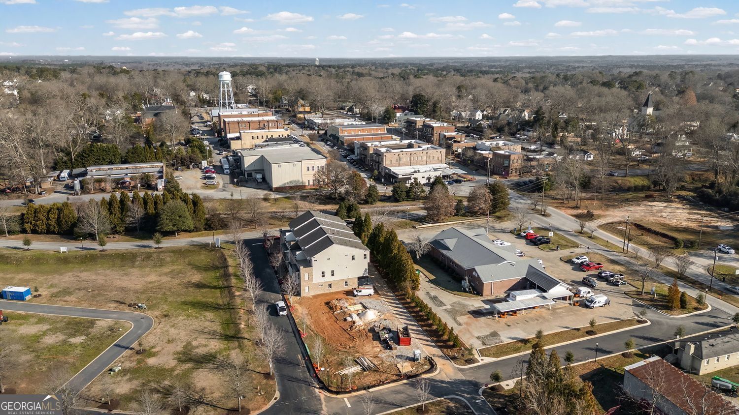 New Construction Townhome in the Heart of Downtown Senoia. Experience elevated living in this beautifully designed three-story townhome by JW Collection-The Seneca, ideally located within walking distance to the shops, restaurants, and vibrant entertainment of Downtown Senoia-all just 40 minutes from Hartsfield-Jackson Atlanta International Airport. Spacious & thoughtfully designed Interiors over 3,220 square feet of expertly crafted living space, this townhome is perfect for those seeking a blend of luxury, comfort, and convenience. Street-Level Entry. Step inside from the charming streetscape into a private two-car garage with additional golf cart parking, a bedroom with full bath, and a flex space ideal for a home office, gym, or media room. Main Level - Designed for Entertaining..The open-concept second floor features a great room with a fireplace, dining area, and a keeping room that seamlessly flows to a covered 10' x 12' deck-perfect for indoor/outdoor entertaining. The gourmet kitchen is a chef's dream, complete with Stainless steel KitchenAid appliances, Gas cooktop with custom wood venthood, Quartz countertops, Walk-in pantry with custom wooden shelving and a stylish powder room completes this level. Top Floor - Private Retreat...Upstairs, the owner's suite impresses with a spa-inspired bath, featuring a large, tiled shower, dual quartz vanities, and a custom walk-in closet system. Also on this level are a secondary bedroom with full bath, a versatile media room, and a private 24' x 10' rooftop sky terrace with spectacular views of the Gin Property neighborhood and Senoia's historic charm. The home's classic exterior blends timeless elegance with modern materials, including brick and Hardie plank siding. Every detail reflects the JW Collection's commitment to quality craftsmanship and design excellence. Don't miss your opportunity to own a luxury townhome in one of Georgia's most picturesque and walkable communities. Interior photos shown are representative of finishes from a similar community and not of the actual unit. Home is currently under construction and should be complete in late February.