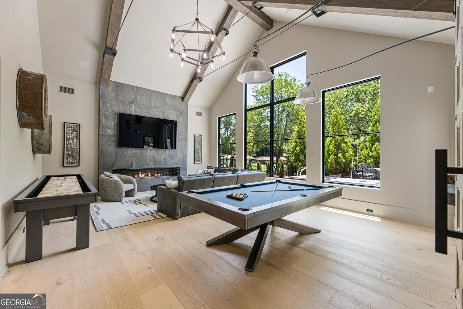 This ultra-luxury estate offers nearly 10,000 square feet of resort-style indoor-outdoor living just a five-minute walk from downtown Alpharetta. Purpose-built for grand entertaining, multi-generational living, and year-round relaxation, it is one of the most complete, amenity-rich homes available this close to the heart of the city. Interior lifestyle section Step inside to an expansive, fully open floor plan with soaring ceilings and walls of glass that frame unobstructed views of the resort-style pool. The king-size primary suite sits just steps from the pool, creating a true indoor-outdoor retreat with immediate access to morning laps or late-night dips. A massive man cave anchors the entertainment level, complete with a full wet bar and custom wine room that is ideal for game days, poker nights, or hosting events. A vaulted-ceiling theatre room overlooks the luxury pool and is designed for an immersive cinema experience, from big games to movie marathons. For daily performance and wellness, a private weight room and fitness studio provide a dedicated space for serious year-round training without ever leaving home. Outdoor resort experience Outside, the residence transforms into a private resort with an ultra-luxury pool featuring waterfalls, water bubblers, and multiple firepits that create dramatic ambiance day and night. Expansive hardscape and lounge areas allow for seamless flow between sunbathing, dining, and evening gatherings under the stars. A large cabana serves as the ultimate outdoor clubhouse, with a big-screen TV lounge, Green Egg, gas grill, flat-top grill, pizza oven, and full wet bar. Whether hosting a Saturday tailgate, a catered event, or a relaxed family cookout, this space is engineered for effortless entertaining at scale. Suites, garage, and flexibility A flexible mother-in-law / teenager / nanny suite includes its own master bedroom, living room, and kitchen, with a private front door plus garage or elevator access for complete independence. This configuration is ideal for multi-generational living, long-term guests, or on-site staff who still need privacy. The oversized four-car garage offers abundant space for luxury vehicles, golf carts, toys, and storage, with room to organize gear for an active, Alpharetta-centric lifestyle. Location and positioning Positioned just a short walk from downtown Alpharetta's restaurants, shops, and entertainment, this home delivers a rare combination of scale, amenities, and walkability. Opportunities of this caliber-offering true resort living and nearly 10,000 square feet of luxury just minutes on foot from city-center energy-are exceptionally limited, making this a standout premier estate in the downtown Alpharetta market.