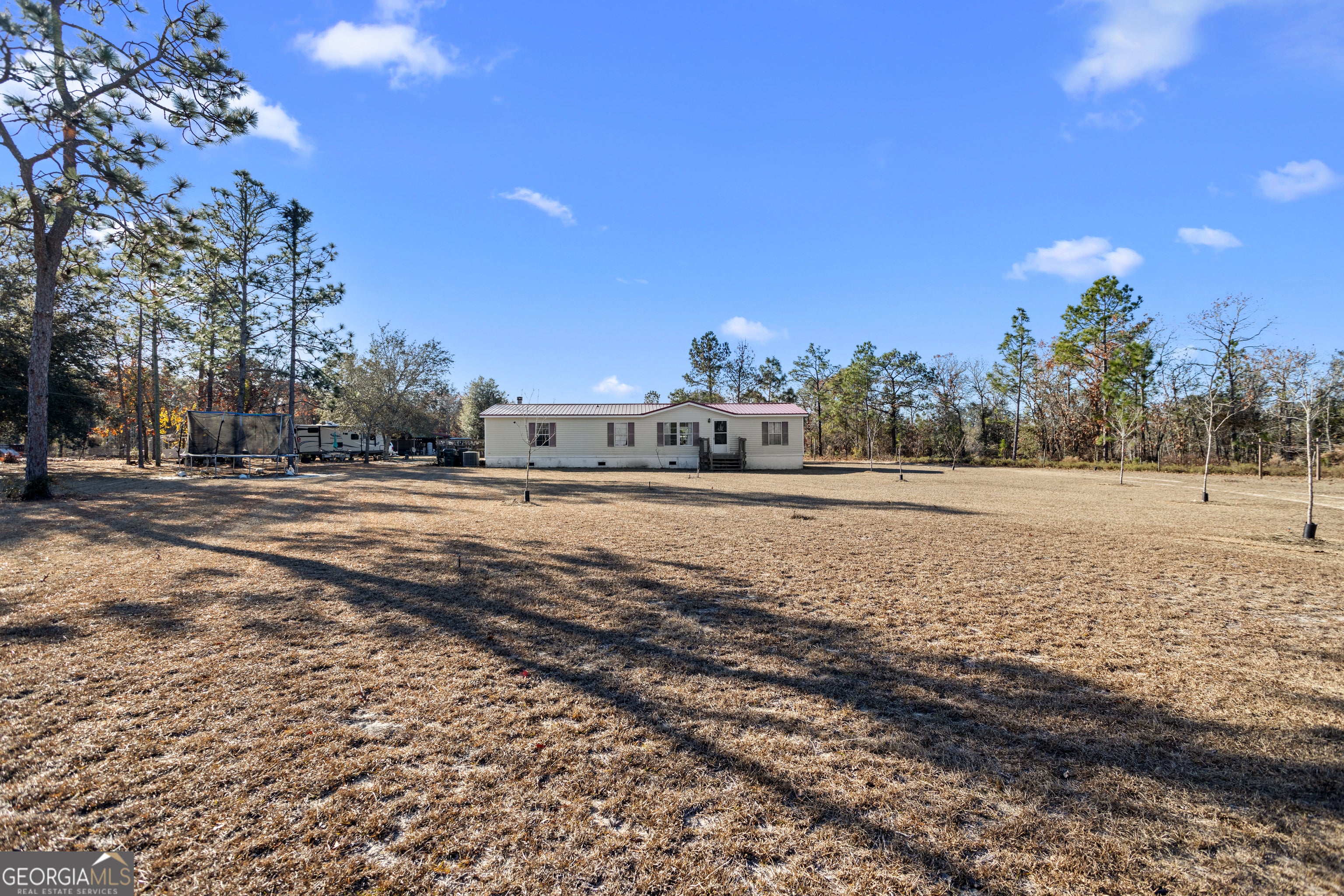 Welcome to your dream hobby farm in Collins, GA! Nestled on 3.65 acres, this charming 3-bedroom, 2-bath mobile home offers the perfect blend of country living and modern comfort. Irrigated pecan trees, Spacious pole barn ideal for storage, equipment, or livestock, 30 AMP RV hookup for guests or travel convenience, Livestock-friendly grounds with plenty of room to roam. No HOA restrictions - enjoy true freedom on your land. New metal roof installed in 2024 for peace of mind and durability. Relax and entertain with an attached screened-in porch and a separate deck. Inside you will find a Cozy woodburning fireplace in the living room, perfect for gatherings Primary suite with double vanity and walk-in closets Modern kitchen island with sink and ample counter space Pantry and water filtration system for fresh, clean living This property is a rare find - combining functionality, charm, and self-sufficiency. Whether you're looking to raise livestock, enjoy farm-to-table living, or simply savor the quiet countryside, this home is ready to welcome you.
