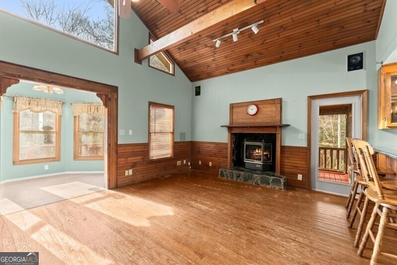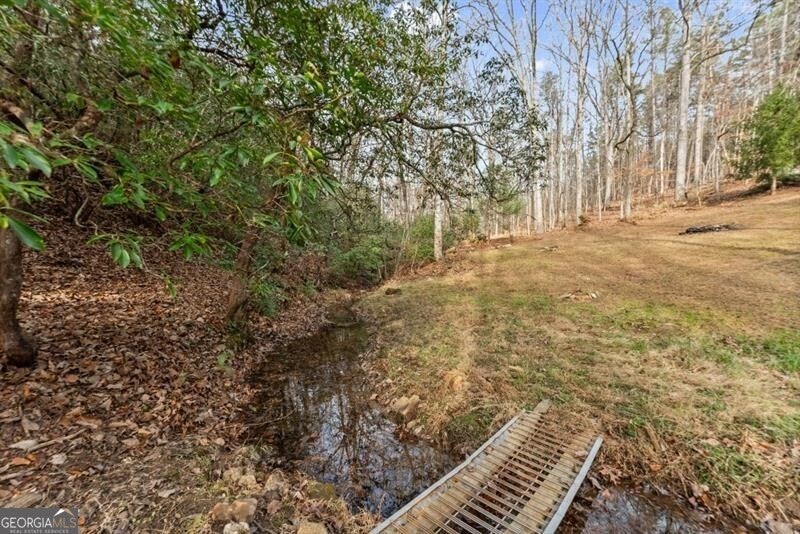 Tucked away on 2 peaceful acres, 261 Ridgeway Road offers the charm of country living with the convenience of being just minutes from the heart of Dahlonega. This inviting home blends natural beauty with thoughtful design, creating a true retreat in the North Georgia foothills. The home features 3 bedrooms and 3 full baths, with a main-level primary suite that includes a relaxing soaking tub and walk-in closet-your own private escape at the end of the day. Also on the main floor is a versatile flex room, perfect for a home office, nursery, or additional bedroom. The main living area welcomes you with an open-concept kitchen, dining, and living space, accented by hand-finished natural hardwood floors that add warmth and character throughout. The cozy living room centers around a gas stove with a natural flame, ideal for cool mountain evenings. Upstairs, you'll find two comfortable bedrooms and a full bath, providing space and privacy for family or guests. Step outside and take in the serene setting, where a gently sloping backyard leads to a private, stream-fed pond, creating a picturesque spot to relax, explore, or enjoy quiet mornings outdoors. The covered outdoor patio is perfect for grilling, entertaining, or simply soaking in the peaceful surroundings. A detached garage offers endless possibilities, whether used as a workshop, barn, or additional storage. Situated along a private community road, this property offers privacy and tranquility while remaining less than 10 minutes from Dahlonega's historic square and just 10 minutes to GA-400, making it easy to enjoy both seclusion and convenience. This is North Georgia living at its finest-rustic, peaceful, and ready to be called home.
