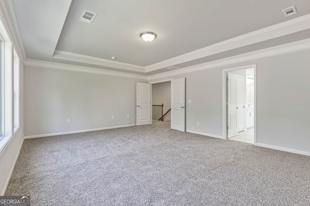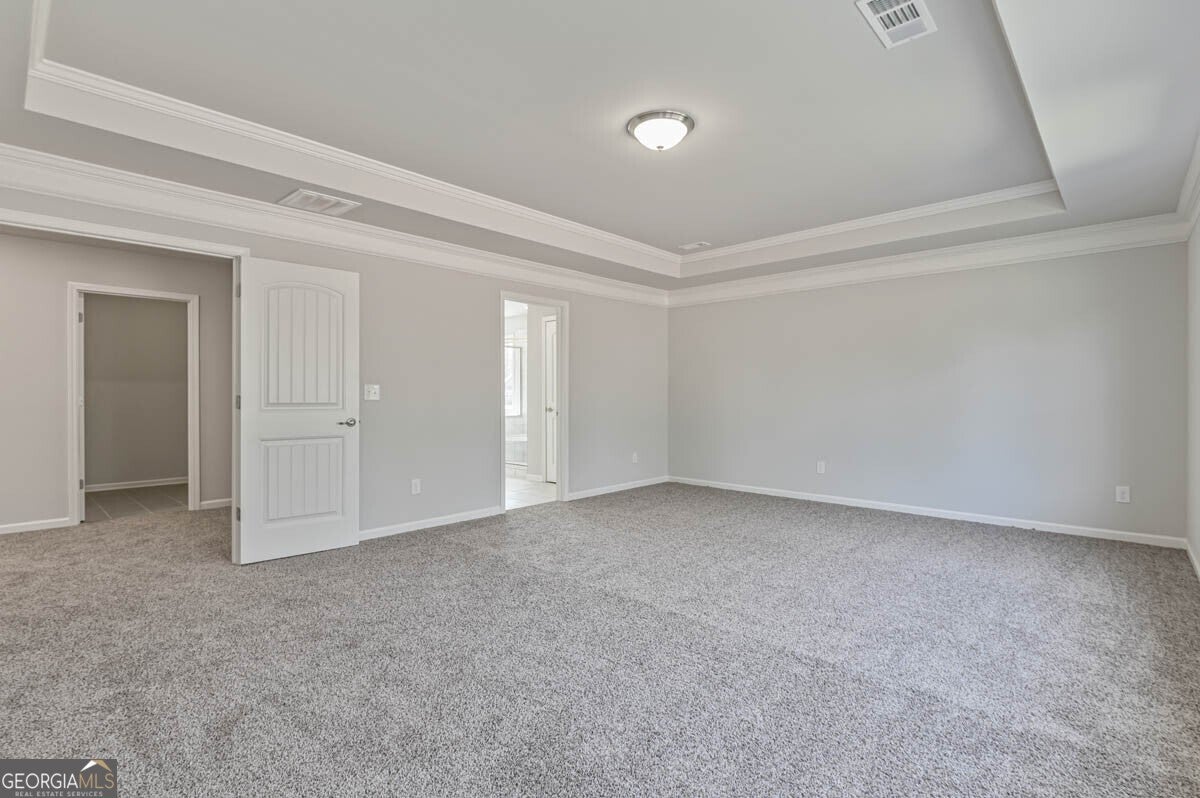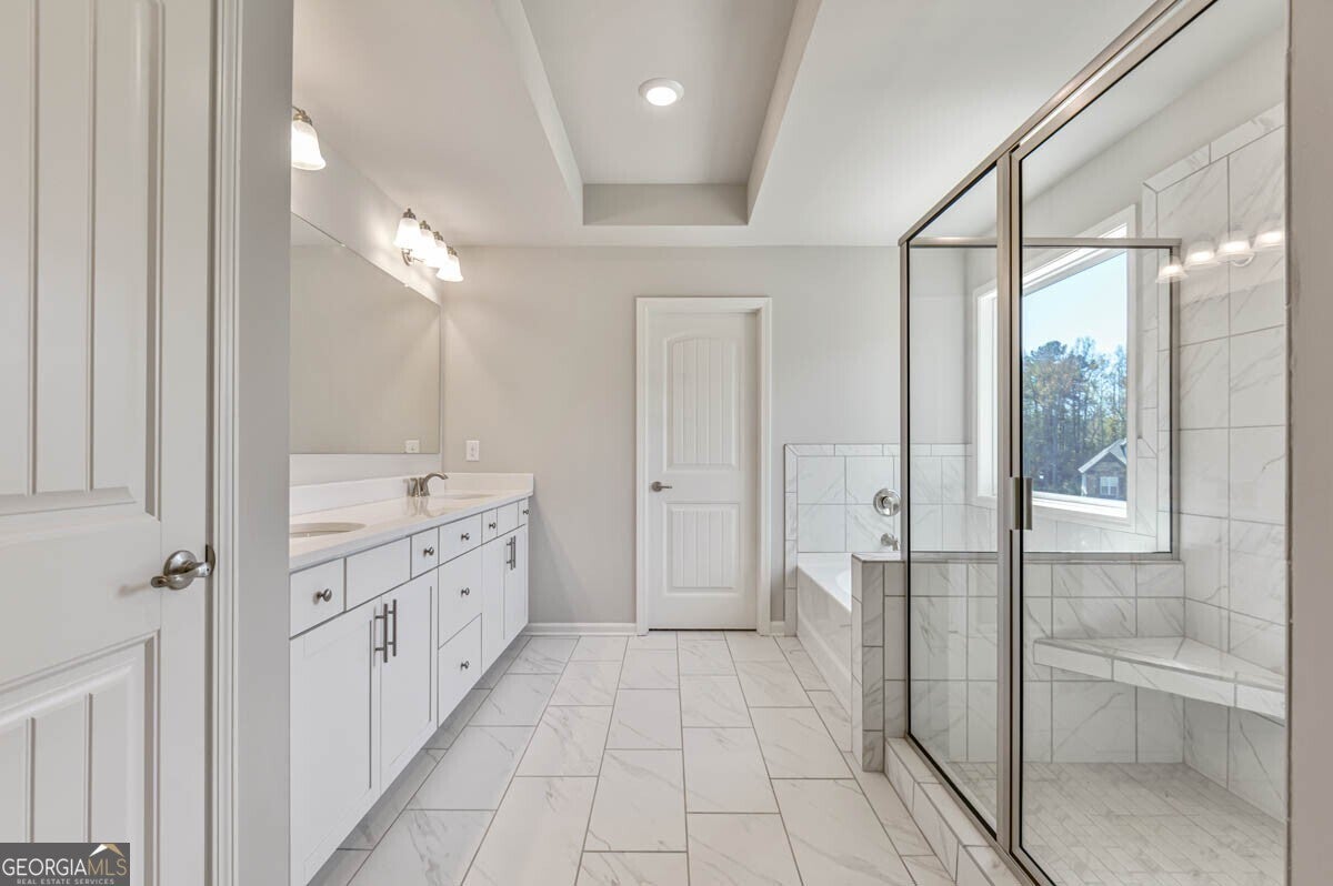 - Interior FeaturesDouble Vanity, High Ceilings, Pulldown Attic Stairs, Separate Shower, Soaking Tub, Split Bedroom Plan, Tray Ceiling(s), Walk-In Closet(s)