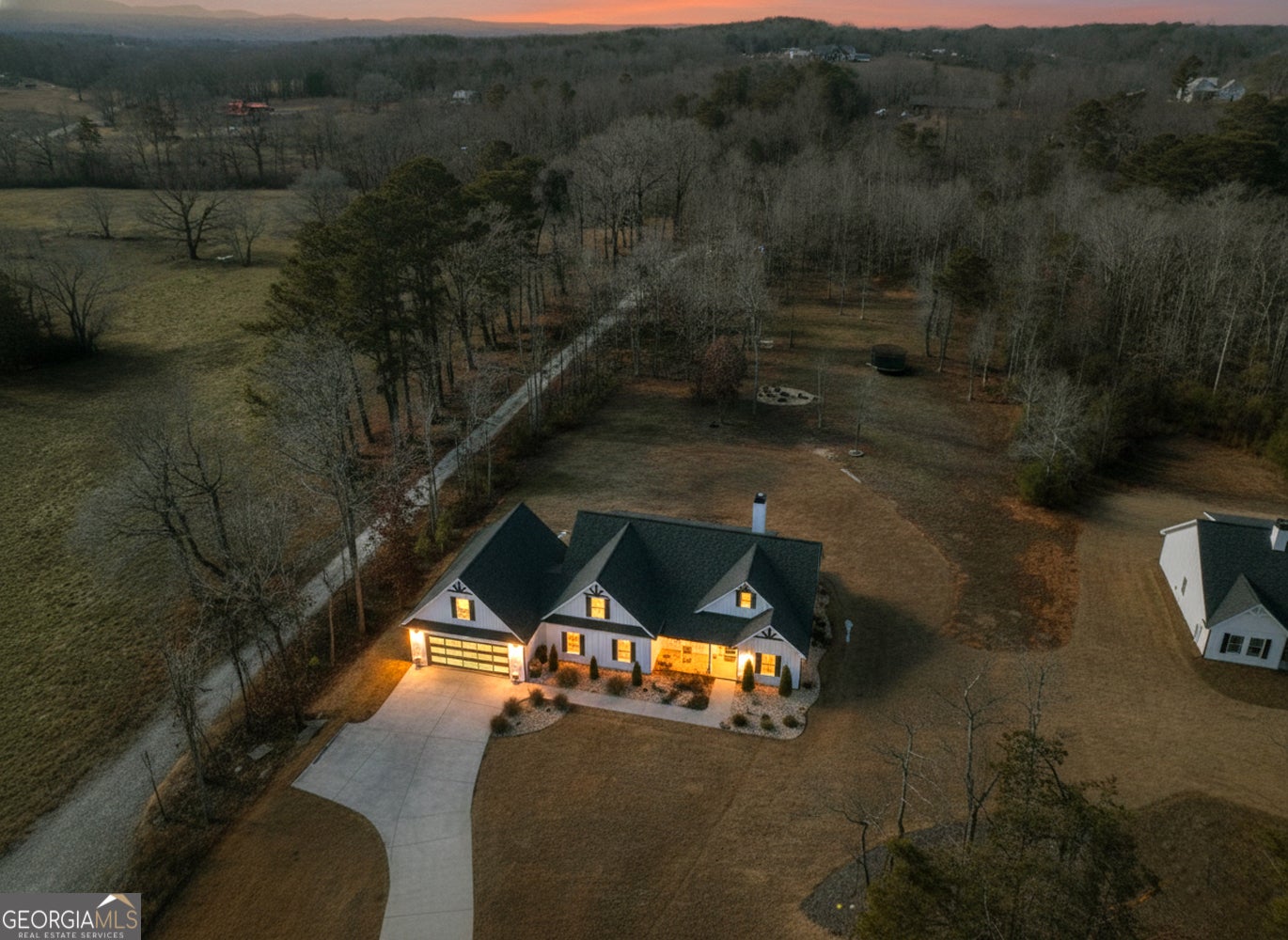This EXQUISITE 4 BEDROOM, 3 BATHROOM RANCH FARMHOUSE, built in 2022, offers 3,132 square feet of impeccably curated living space with sophisticated design, premium finishes, and a seamless open floor plan crafted for elevated everyday living. Perfectly positioned to capture PEACEFUL PASTURE VIEWS, the property features PROFESSIONAL DESIGNED LANSCAPING AND LIGHTING, a FLAT/CONCRETE driveway, EXPANSIVE FRONT AND BACKYARD SPACE, and an INVITING FIREPIT AREA, all set on a quiet street with minimal traffic. The covered front porch welcomes you into a grand great room highlighted by a VAULTED and BEAMED ceiling, flowing effortlessly into the designer kitchen and an elegant sitting or flex space centered around a REAL WOOD-BURNING FIREPLACE. The kitchen is a true statement, showcasing QUARTZ COUNTERTOPS, an OVERSIZED ISLAND AND BAR, Samsung custom appliances with WHITE GLASS PANELS, custom cabinetry, stainless sink, shiplap accent wall, subway tile backsplash, and a WALK-IN BUTLER'S PANTRY with a DOUBLE CUSTOM STAIN GLASS DOORS, custom shelving, cabinetry, prep counters, and distinctive checkered tile flooring. The dining area features a SHIPLAP ACCENT WALL and abundant windows that bathe the space in natural light while framing the private backyard. The primary suite is a serene retreat with a tray ceiling, large walk-in closet, and spa-inspired ensuite bathroom featuring a SHIPLAP ACCENT WALL, LUXURIOUS SOAKING TUB, TILE FLOORING, TILE SHOWER, AND DOUBLE VANITY WITH QUARTZ COUNTERTOPS, complemented by a conveniently located laundry room. Two additional bedrooms are accessed through a CUSTOM BARN DOOR and share a refined hall bathroom with single vanity, tile shower and tub combination, tile flooring, and nickel shiplap, while a fourth bedroom on the same side of the home as the primary suite is served by a third bathroom with single vanity, tile flooring, nickel shiplap, and tile shower. A GENEROUS BONUS ROOM ideal for a playroom, executive office, or flexible living space, and a REMARKABLE MUDROOM with expansive walk-in storage, shoe and coat organization, and bench seating that leads into a SHOWSTOPPING 25 X 30 CUSTOM GARAGE professionally designed by a car detailer, featuring EPOXY FLOORS, TILE GRATE DRAIN SYSTEM WITH A SIX-INCH SLOPE, WATER- AND MOISTURE-RESISTANT FINISHES, 140,000 LUMENS OF CUSTOM HEX LIGHTING, CUSTOM CABINETRY, INSULATED, HEATED, AND COOLED SPACE, and a FULLY INTEGRATED CAR WASH SYSTEM including water, air, purification, pressure wash, vacuum, air compressor, storage room, and DEDICATED TOOL AND EQUIPMENT SPACE. Above the garage is a PRIVATE OFFICE OR WORKSPACE with LUXURY VINYL PLANK FLOORING and VAULTED CEILING. Ideally located LESS THAN TWELVE MINUTES TO DOWNTOWN JASPER in a HIGHLY DESIRABLE NEIGHBORHOOD WITH NO HOA, this ONE-OF-A-KIND RESIDENCE presents an EXCEPTIONAL OPPORTUNITY FOR THE MOST DISCERNING BUYER.