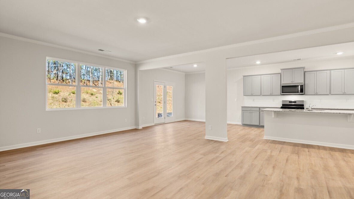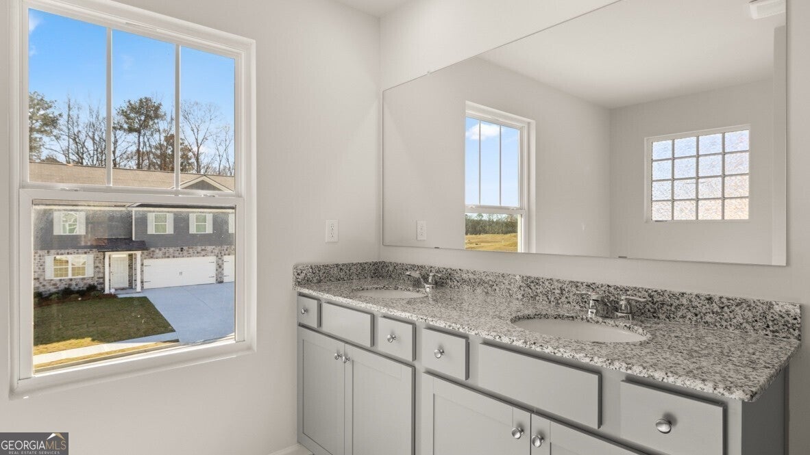 Welcome to South Wind a new community in Union City, GA and home to 6014 Muirfield Point! This Halton floorplan home is easy to fall in love with all the space offered. This plan offers 5 bedrooms and 3 bathrooms in 3,209 with a 2-car garage. A spacious foyer leads you into the home, with access to the stairs, a hallway leading into the living room, and an entryway into the flex room at the front of the home. Through the flex room you'll enter a butler's pantry that connects to the and provides access to the roomy walk-in pantry. The large kitchen feels boundless with seamless flow into the attached dining area and adjacent living room. Stainless steel appliances, an oversized island, and bountiful counterspace make this kitchen a chef's dream. A bedroom and full bathroom round out the main living area. At the top of the stairs, you will find another living area. On one side, there are three secondary bedrooms and a bathroom with double vanity and a linen closet. On the other side, the primary suite sprawls from the front of the home to the back, boasting a roomy bedroom with its own sitting area, two large walk-in closets, and a primary bathroom with double vanity, separate soaking tub and shower, and a water closet. An ample laundry room completes the second level. Call your agent today to learn more about this beautiful plan and how to make 6014 Muirfield Point your new home! Photos are representative in nature and do not depict actual home listed. Features may differ.