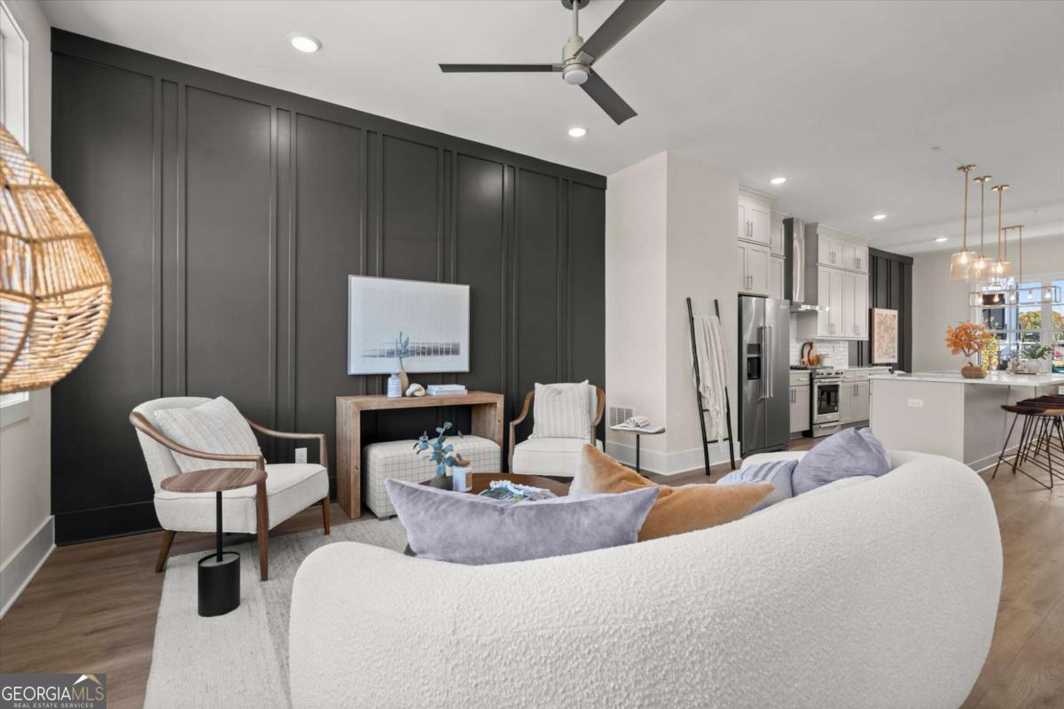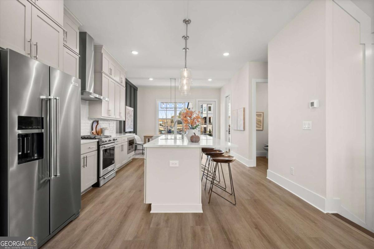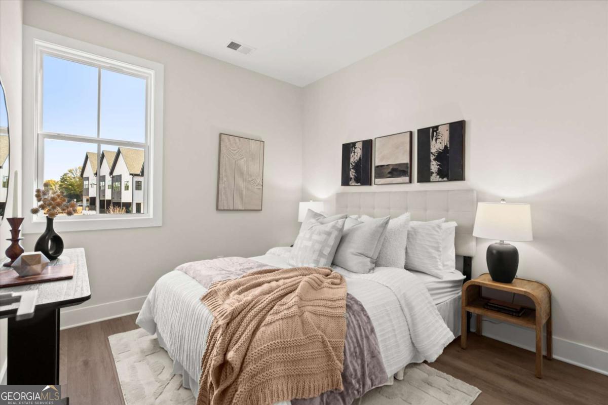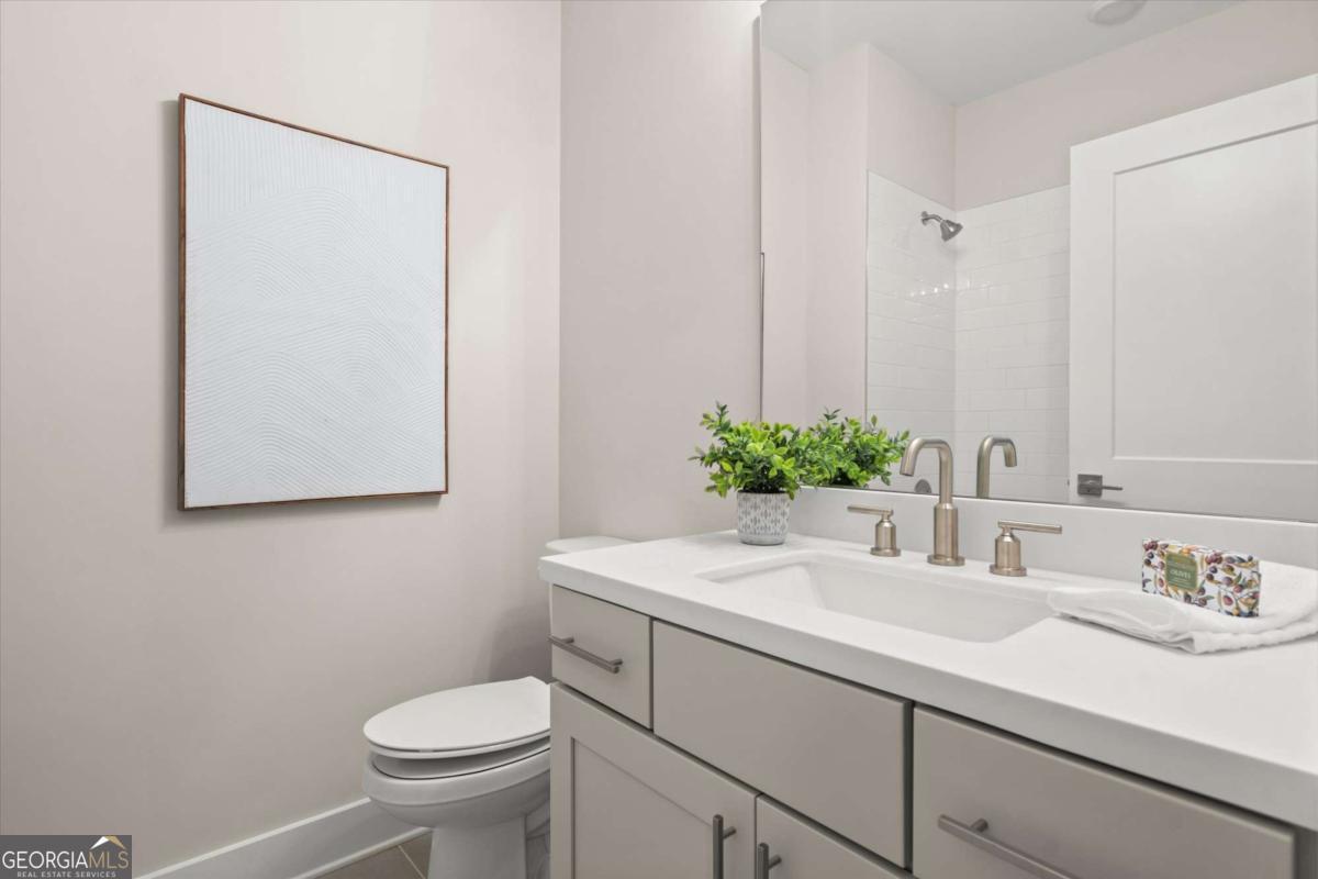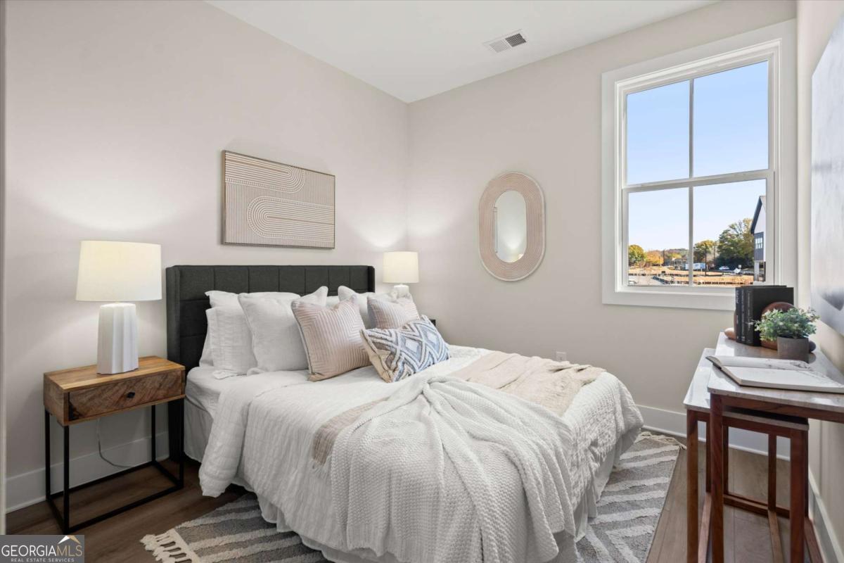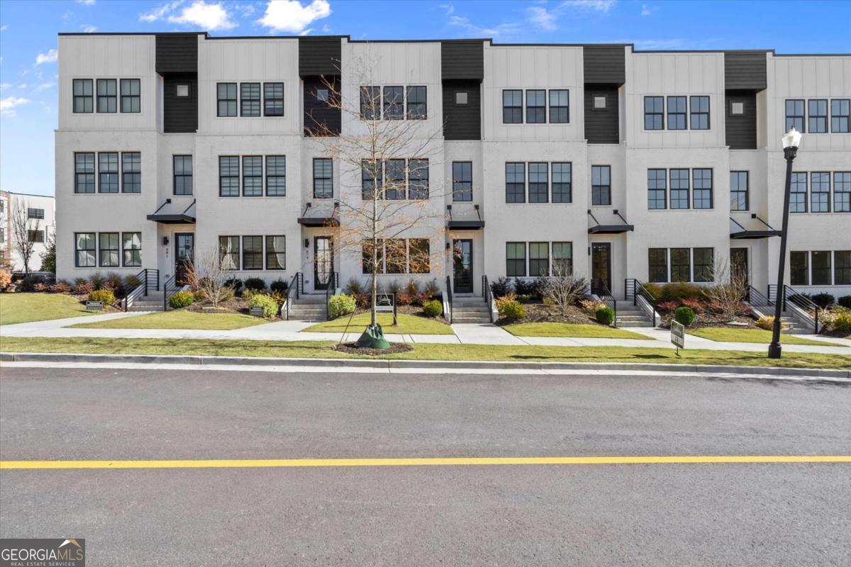 Special Financing Available! Enjoy interest rates as low as 4.75% for qualified buyers who close before year-end. Introducing The Adeline - a contemporary townhome offering 2,160 sq. ft. across three levels with 4 bedrooms and 3.5 baths. Professionally designed and richly upgraded, this home features elevated finishes and thoughtful enhancements throughout, offering a rare opportunity to own one of the most highly appointed residences in the community. The main level includes a private guest suite with full bath and access to the two-car garage. Upstairs, the open-concept living area showcases 10-foot ceilings, a spacious great room, and a chef's kitchen with KitchenAid stainless steel appliances, quartz countertops, and an oversized island. The top floor features a serene primary suite with a walk-in closet and spa-inspired bath, plus two additional bedrooms, a full bath, and laundry. Located in The Gathering, just minutes from Downtown Alpharetta, Avalon, and the Alpha Loop, residents enjoy a community garden, firepit, and dog park. A future mixed-use development beginning in 2026 will bring restaurants, boutique shops, and entertainment right to the neighborhood-delivering everyday convenience just steps from home. Photos are of the actual home. Agent on-site Mon, Tues, Thurs-Sat (10-6) and Wed & Sun (1-6).