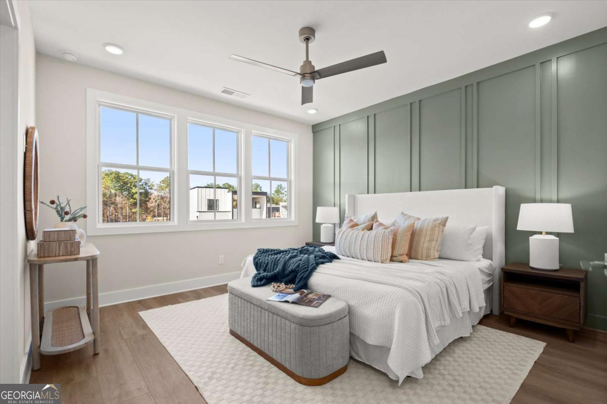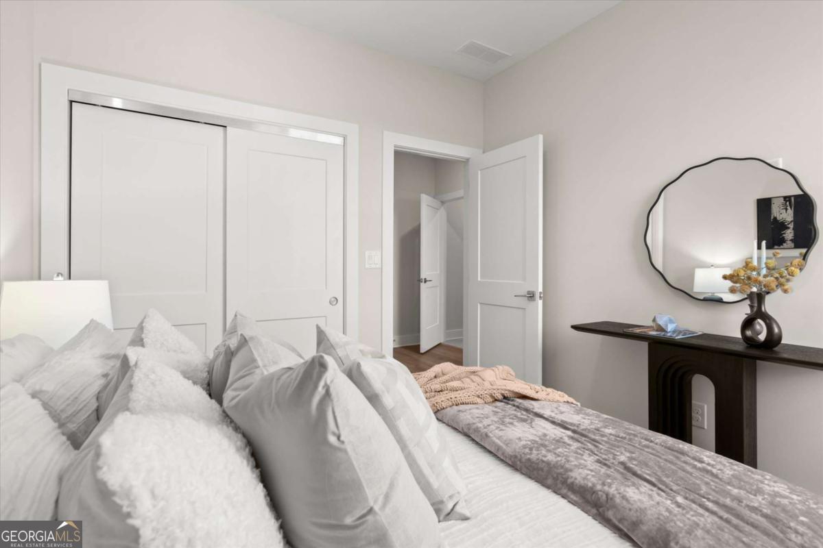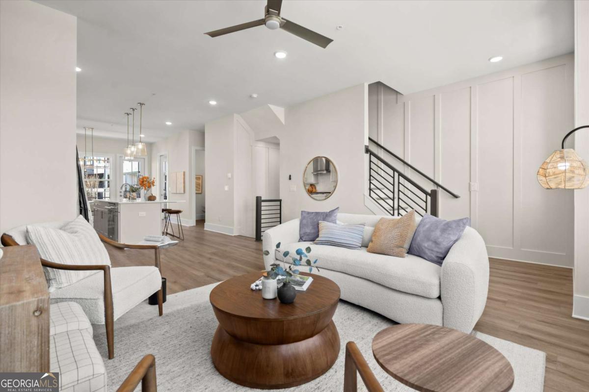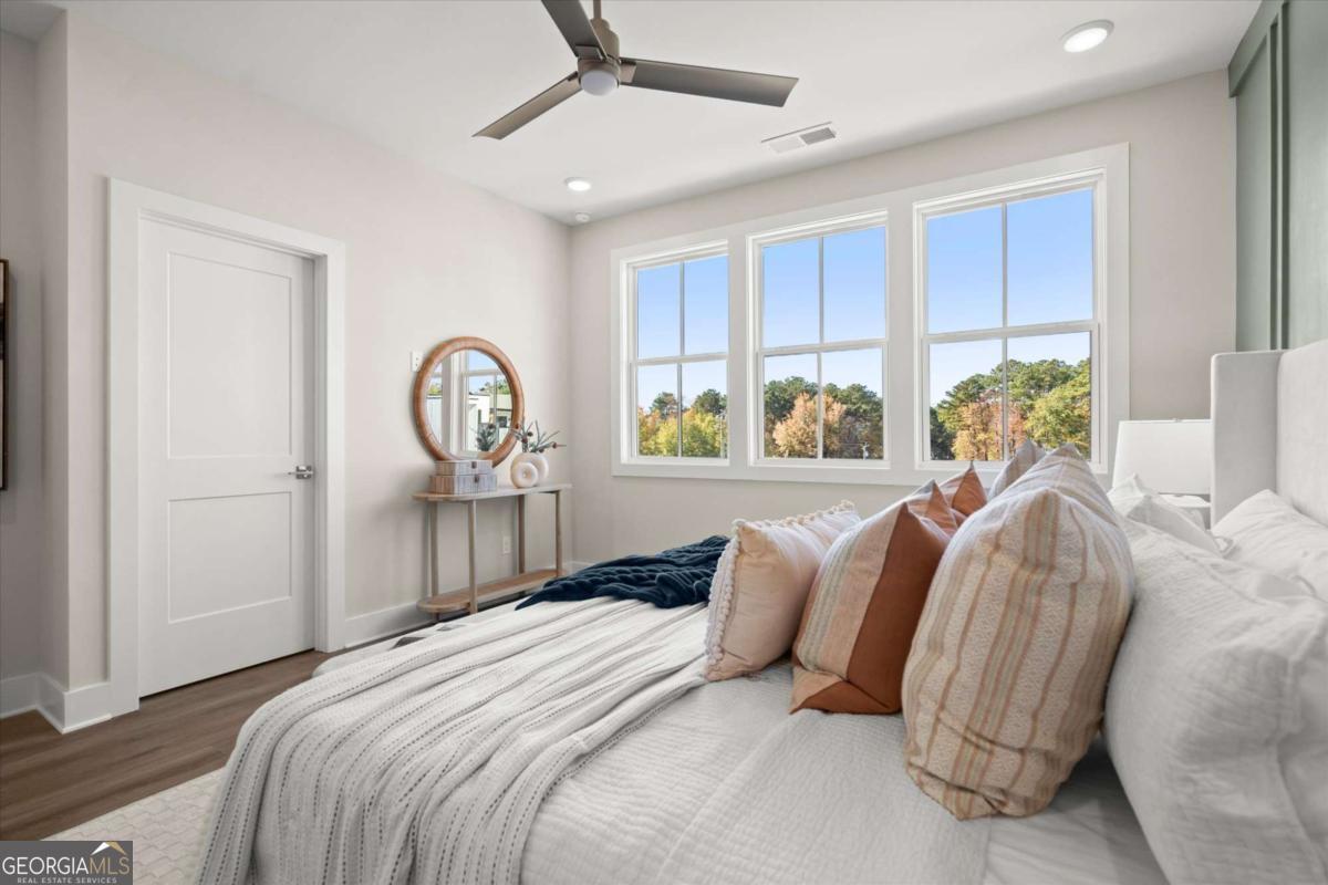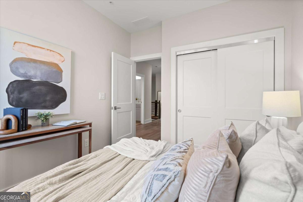 Special Financing Available! Enjoy interest rates as low as 4.75% for qualified buyers who close before year-end. Introducing The Adeline - a contemporary townhome offering 2,160 sq. ft. across three levels with 4 bedrooms and 3.5 baths. Professionally designed and richly upgraded, this home features elevated finishes and thoughtful enhancements throughout, offering a rare opportunity to own one of the most highly appointed residences in the community. The main level includes a private guest suite with full bath and access to the two-car garage. Upstairs, the open-concept living area showcases 10-foot ceilings, a spacious great room, and a chef's kitchen with KitchenAid stainless steel appliances, quartz countertops, and an oversized island. The top floor features a serene primary suite with a walk-in closet and spa-inspired bath, plus two additional bedrooms, a full bath, and laundry. Located in The Gathering, just minutes from Downtown Alpharetta, Avalon, and the Alpha Loop, residents enjoy a community garden, firepit, and dog park. A future mixed-use development beginning in 2026 will bring restaurants, boutique shops, and entertainment right to the neighborhood-delivering everyday convenience just steps from home. Photos are of the actual home. Agent on-site Mon, Tues, Thurs-Sat (10-6) and Wed & Sun (1-6).