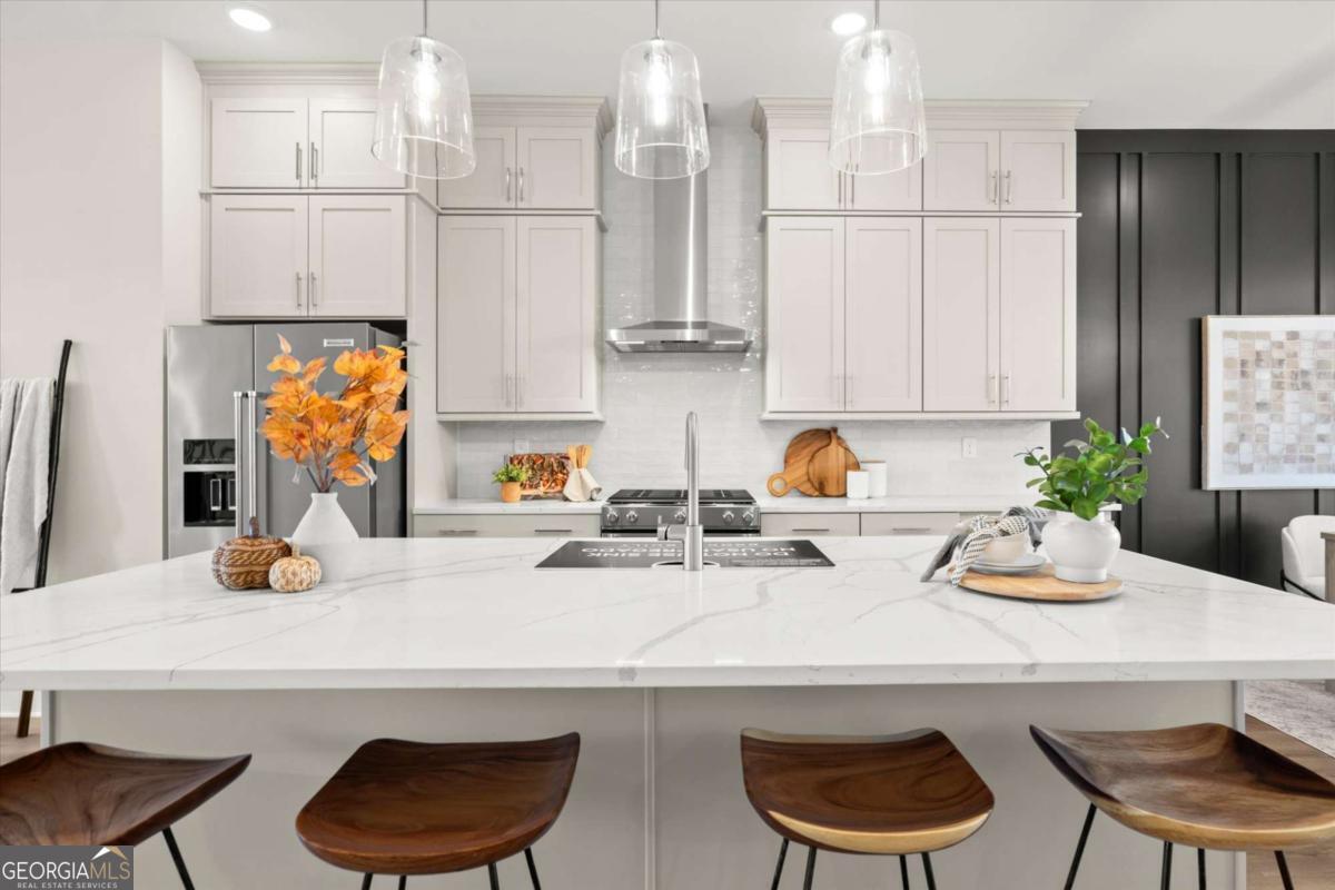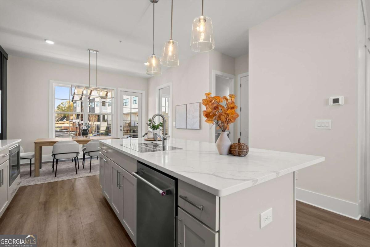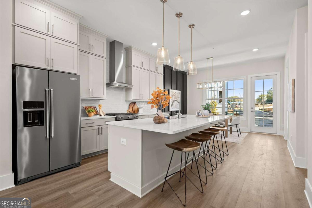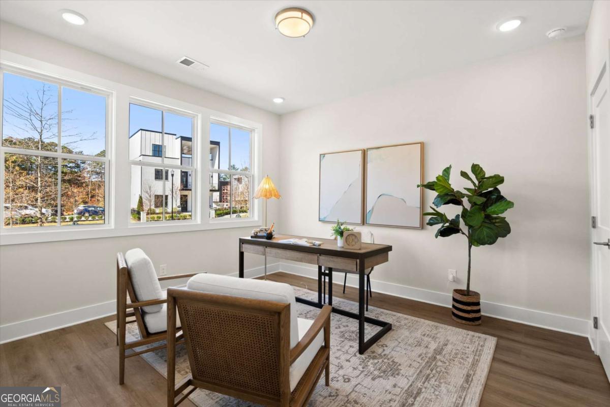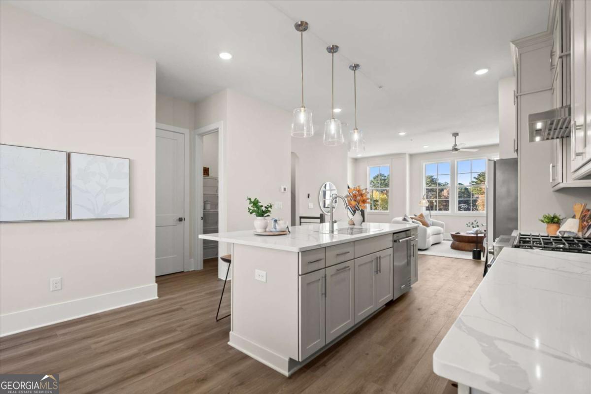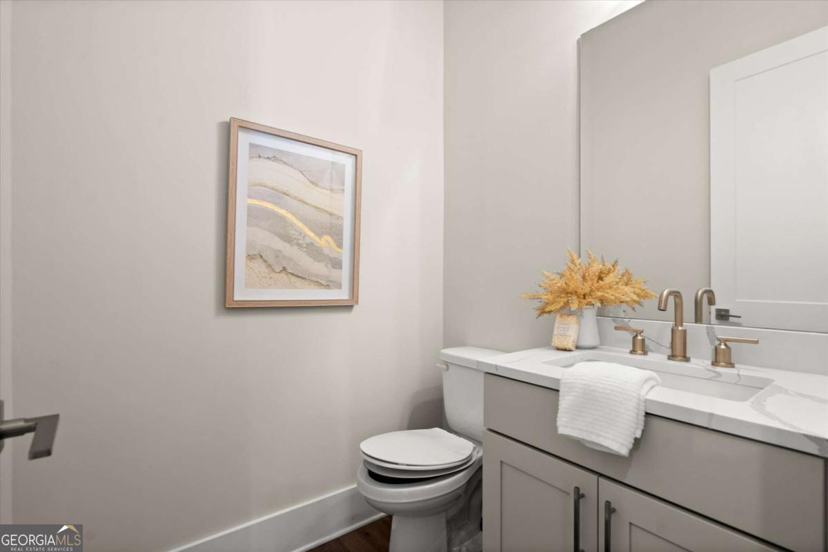 Special Financing Available! Enjoy interest rates as low as 4.75% for qualified buyers who close before year-end. Introducing The Adeline - a contemporary townhome offering 2,160 sq. ft. across three levels with 4 bedrooms and 3.5 baths. Professionally designed and richly upgraded, this home features elevated finishes and thoughtful enhancements throughout, offering a rare opportunity to own one of the most highly appointed residences in the community. The main level includes a private guest suite with full bath and access to the two-car garage. Upstairs, the open-concept living area showcases 10-foot ceilings, a spacious great room, and a chef's kitchen with KitchenAid stainless steel appliances, quartz countertops, and an oversized island. The top floor features a serene primary suite with a walk-in closet and spa-inspired bath, plus two additional bedrooms, a full bath, and laundry. Located in The Gathering, just minutes from Downtown Alpharetta, Avalon, and the Alpha Loop, residents enjoy a community garden, firepit, and dog park. A future mixed-use development beginning in 2026 will bring restaurants, boutique shops, and entertainment right to the neighborhood-delivering everyday convenience just steps from home. Photos are of the actual home. Agent on-site Mon, Tues, Thurs-Sat (10-6) and Wed & Sun (1-6).