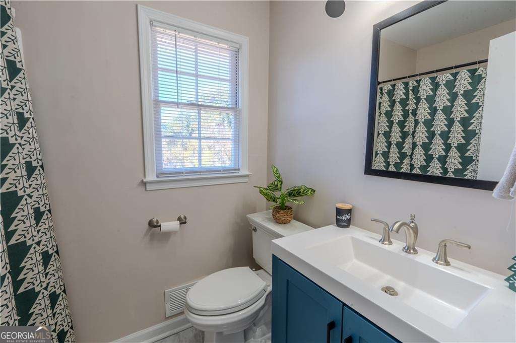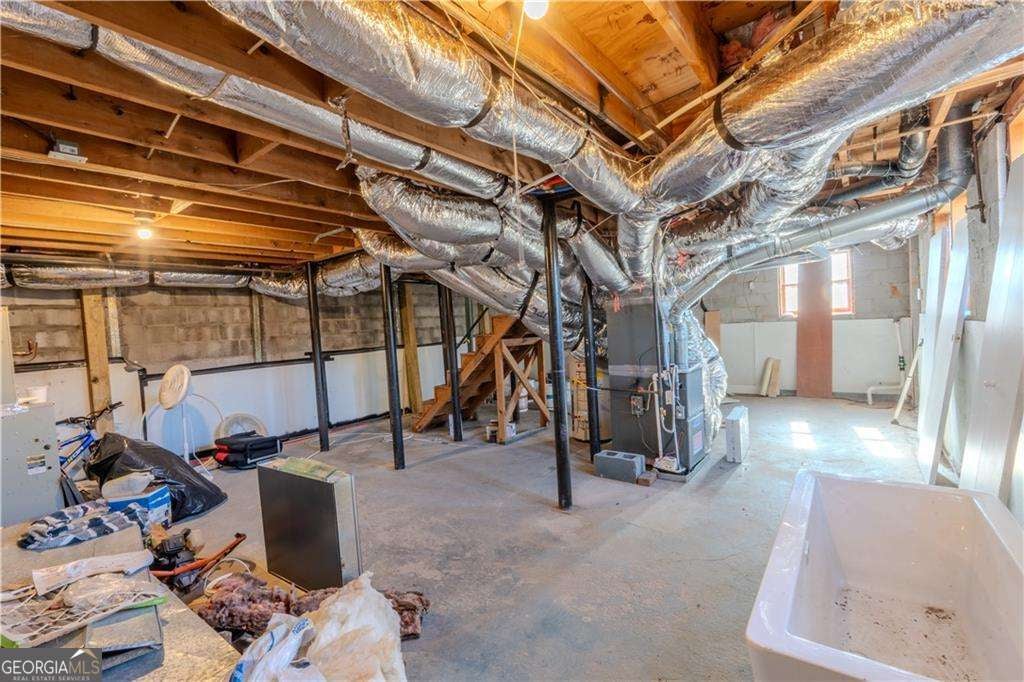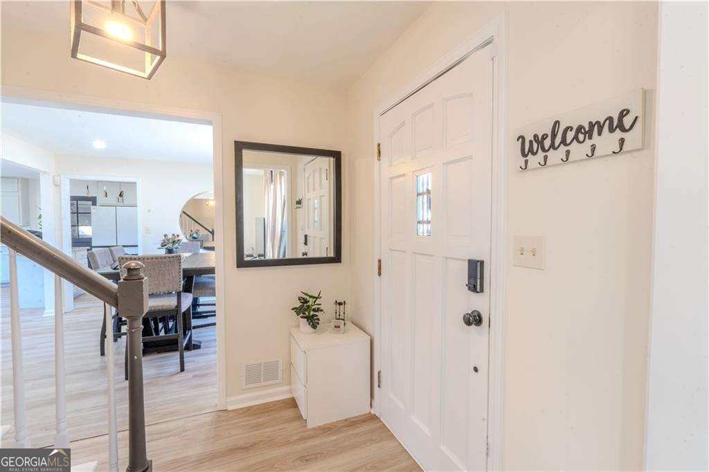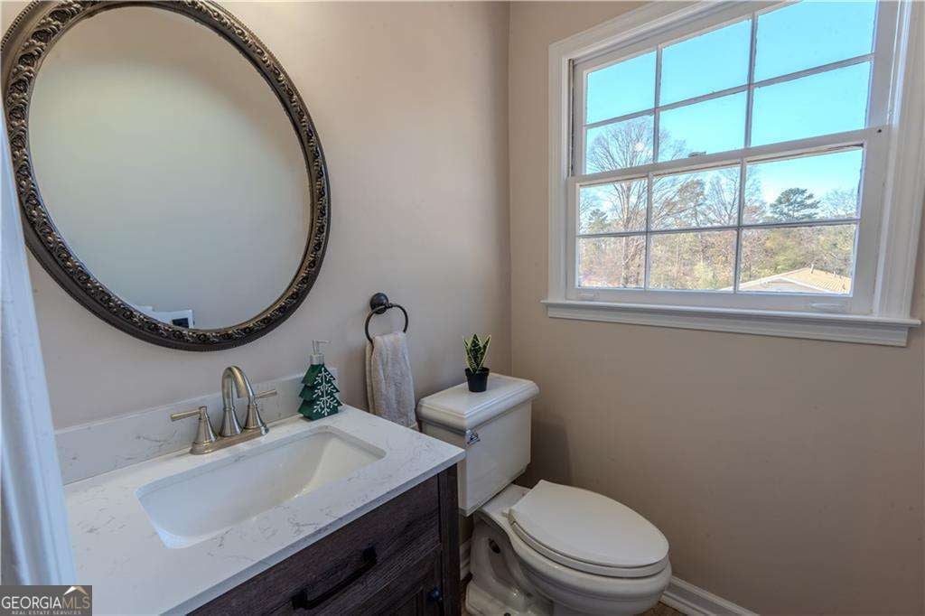 Welcome to this stunningly updated traditional home featuring 3 bedrooms and 2.5 bathrooms, perfectly situated on a spacious half-acre corner lot in the heart of Stone Mountain. As you enter, you'll appreciate the fully renovated interior with brand-new finishes throughout. The main level offers an open-concept layout where the inviting family room flows effortlessly into the upgraded kitchen, complete with quartz countertops, an elegant backsplash, stainless steel appliances, and a modern under-mount sink. This level also includes a refreshed half bathroom, a spacious laundry room, and a formal dining area, all enhanced with new flooring and contemporary lighting. Upstairs, you'll find three comfortable bedrooms with new carpet and updated fixtures. The two full bathrooms have been beautifully remodeled, featuring new vanities, modern lighting, and stylish tile floors. The unfinished basement provides endless possibilities for future expansion or customization.