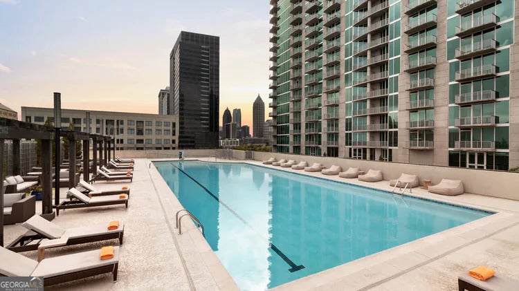 Step into this stylish residence in the heart of Atlantic Station - one of Atlanta's most vibrant and walkable live/work/play neighborhoods. This unit offers a perfect blend of modern comfort, bright light, and city-sides views. Enter a luminous, open-plan living/dining area accentuated by floor-to-ceiling windows and expansive balcony access - perfect for enjoying the skyline at golden hour. The kitchen features sleek finishes: stainless steel appliances, high-end countertops, a generous breakfast bar/island and stylish cabinetry - designed as much for entertaining as everyday life. The primary suite is thoughtfully located for privacy, with ample closet space and direct access to a full spa-style bath. Enjoy in-unit laundry, luxury flooring, and designer touches (paint, fixtures, window treatments) that speak to turnkey ease. From the balcony and many windows, take in sweeping cityscape views - a distinctive urban perk. The building offers secure access, one assigned parking space, and amenities that enhance lifestyle: 24-hour concierge, resort-style pool, fully outfitted fitness center, clubroom / business center. Nestled near fresh dining, boutique shopping, and entertainment, the address is a walker's dream. The neighborhood scores high for walkability and transit access. Within moments you'll find yourself at retail anchor stores, a movie theater, cafes, Midtown and West Peachtree corridors, and major highways that keep the city within reach. Excellent value in a high-demand Atlanta condo building Major highlights: * Entire unit is freshly painted * New flooring is just installed (no carpet) * Unit is upgraded with Modern bath details * A turnkey unit: move-in ready with modern finishes. * Balconied city-view living: not many units deliver both view and amenities in this price zone. * Ideal for urban professionals or empty-nesters Minutes to I-75/85, Midtown, Georgia Tech, and major tech/office hubs Don't miss your chance to claim a slice of Atlanta skyline living at exceptional #13 floor view. Please come and see how this property offers both everyday comfort and hight-end city lifestyle.