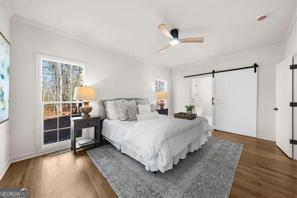 Just in time for Christmas, this completely renovated home, with NO HOA, is nestled on nearly 3 acres in the heart of Dahlonega, a town that is straight out of multiple Hallmark movies - where twinkling lights line the square, people still wave, and the holidays feel like they used to. Frequently featured in Southern Living Magazine, Dahlonega possesses a charming downtown mountain setting, wine country, and rich Gold Rush history. Make this town your home and wake up to the crisp mountain air and picturesque beauty of North Georgia, right outside your door. Mountain views peek through the trees as you relax on the spacious rocking chair front porch, surrounded by nature and privacy. Perfectly situated just minutes from downtown Dahlonega, this move-in-ready home offers the ideal blend of mountain town living, modern comfort, and small-town charm, all on a private 2.86-acre lot with NO HOA. Step inside to discover a warm and inviting interior featuring refinished 3/4-inch oak hardwood floors on the main level and steps, and new LVP flooring upstairs. The main living space is highlighted by a striking wood-accented cathedral ceiling with custom millwork, adding architectural character and warmth without overwhelming the space. A wood-burning fireplace anchors the room and could be converted to gas if desired. Fresh interior paint, new lighting throughout, and updated interior door hardware complete the beautifully refreshed interior. The open-concept, chef-inspired kitchen is a true showstopper-designed for entertaining and everyday living. It features custom white cabinetry, a large island with a built-in hidden microwave, quartz countertops, a stunning tile backsplash, and sleek stainless-steel KitchenAid appliances, including refrigerator, dishwasher, and oven/range. A bright breakfast area completes the space. The main-level primary suite offers a serene retreat with sliding doors leading directly to the back deck, perfect for morning coffee or evening relaxation. The sophisticated master bath, along with the kids' bath and half bath, have all been completely renovated with modern finishes. Behind the scenes, extensive upgrades provide peace of mind, including two brand-new HVAC systems with new ductwork, a new water heater, crawl space encapsulation with new vents, new gutter guards, new exterior doors (front door, two slider doors, and side entry to garage), new outdoor spigots, a new rain pan on the chimney, and recent tree removal to enhance the property. Outdoor living truly shines. Enjoy the private back deck overlooking your backyard and acreage or take advantage of the breezeway connecting to the detached two-car garage, which creates an additional entertaining area ideal for grilling or relaxing. The garage features epoxy flooring and a new garage door opener, and the property also includes an outbuilding/barn with electric, and large enough to fit a vehicle, -perfect for storage, hobbies, or equipment. The home runs on a private well, offering added independence and savings. Conveniently located close to shopping and restaurants, with quick access to GA-400, the new medical center, and Dawsonville Outlets. Just minutes from Downtown Dahlonega, the UNG campus, Amicalola Falls, Camp Frank D. Merrill, and a collection of local wineries. Zoned for excellent schools. Be home for the holidays in one of North Georgia's most desirable small towns-the Hallmark-worthy Christmas town people dream of calling home. This is more than a home-it's a lifestyle you'll fall in love with.