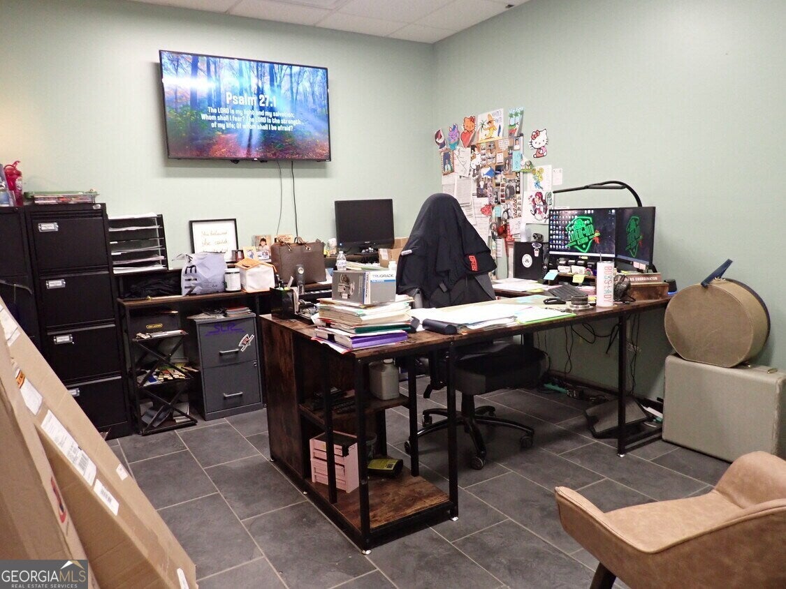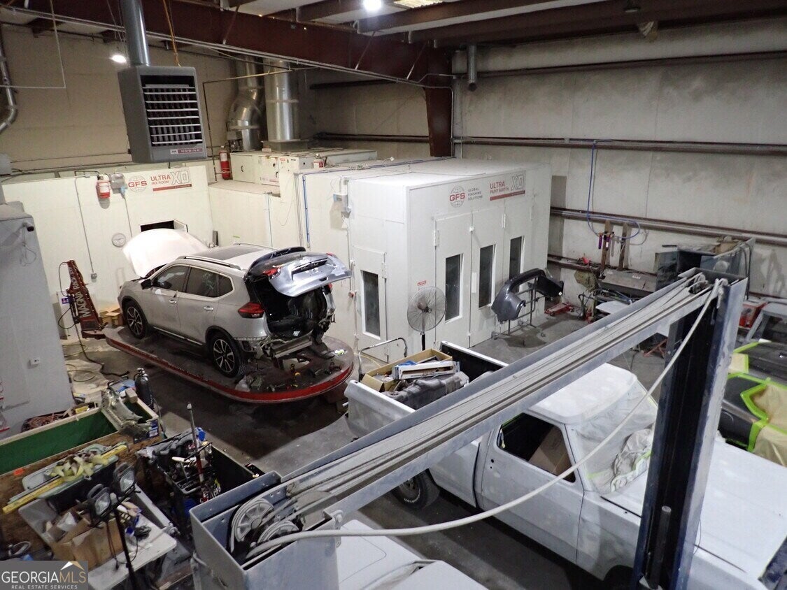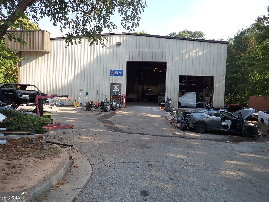 Prime Flex Warehouse Investment Opportunity for owner occupant or investor. Great location in fast growing area in North Fayette County and Convenient to Trillith Studios. Currently being used for auto body repair but has a flexible floor plan. Office/admin are with reception area and 3 private offices, breakroom and two restrooms. Storage and some finished area on the second level of the office area. Has Three Phase power and was set up for use with Paint Spray booth and three auto lifts. Combination of drive-in doors and two dock high doors. Call for more info.