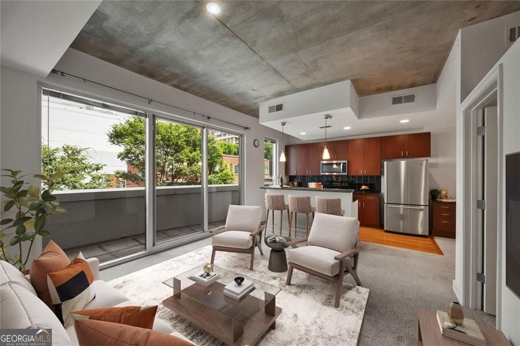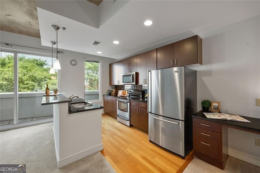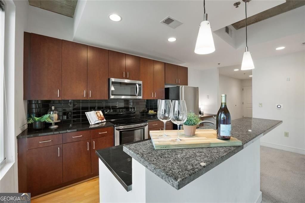Welcome to Unit 428 at Plaza Midtown-where comfort meets convenience in the heart of the city. This bright and open one-bedroom layout features floor-to-ceiling windows that fill the space with natural light, while the kitchen offers granite countertops, stainless steel appliances, and plenty of storage. Need a spot to work? A built-in desk right off the kitchen makes it easy, without the extra clutter. Step outside to a spacious terrace that's perfect for morning coffee or winding down in the evening. The bedroom includes a walk-in closet and an en suite bath. You'll also love how close this unit is to the elevator-making everyday tasks like grocery runs from the on-site Publix a breeze. Plaza Midtown's amenities include 24/7 concierge, a fitness center, pool, and secure parking (with one assigned space). All of this just steps from Georgia Tech, MARTA, top dining, shopping, and a quick walk to Piedmont Park. It's city living made easy.