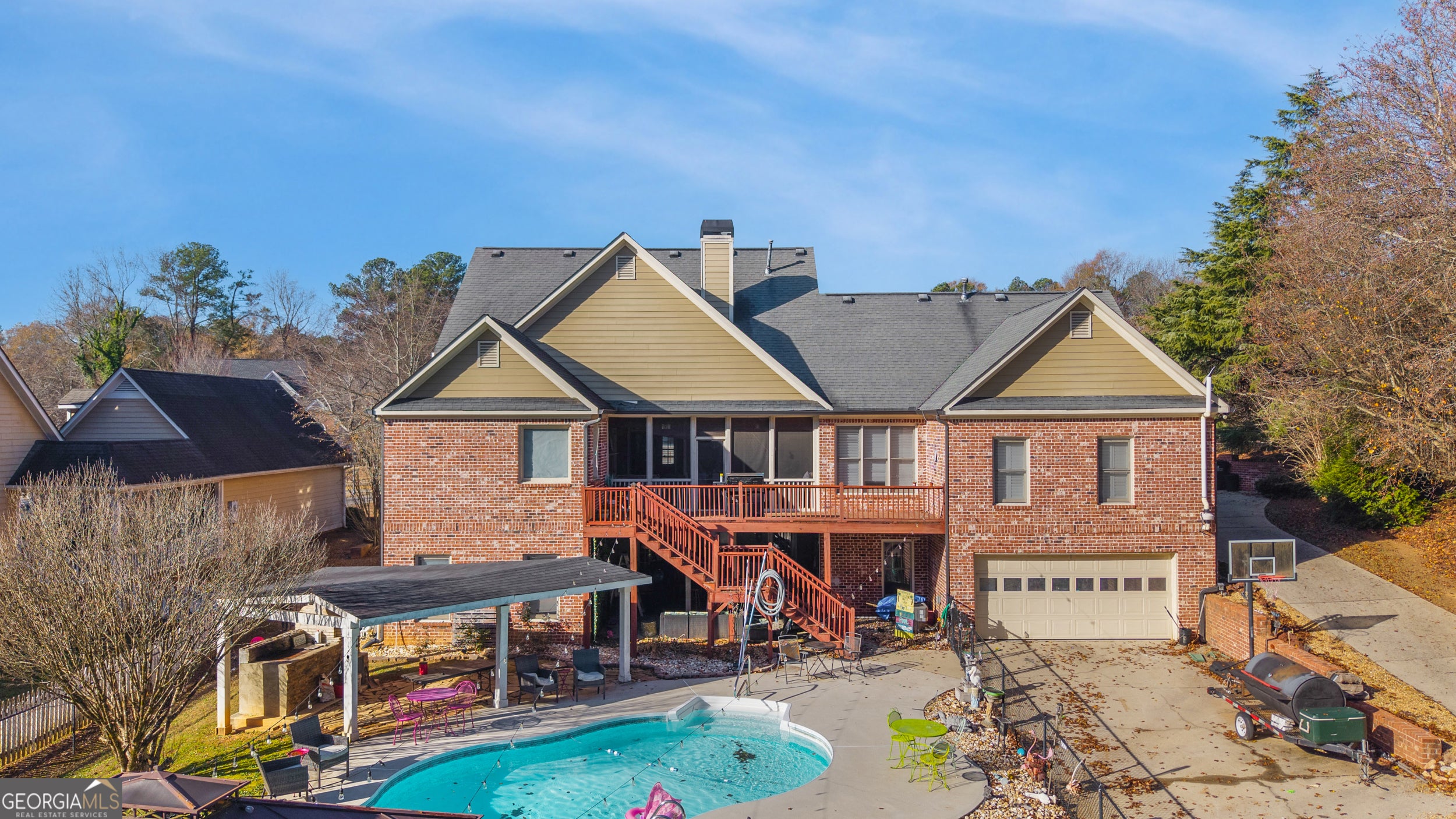 SPARKLING IN-GROUND SALTWATER POOL! Welcome to 8658 Newborn Way, a stunning four-sided brick home located in the highly sought-after Midtown community of Douglasville, GA. With two garages and two private driveways this beautiful custom home residence offers 5 bedrooms and 4 bathrooms, perfectly blending elegance, comfort, and everyday functionality. Ideally situated just minutes from Veterans Memorial Highway and I-20, the home provides easy access while maintaining a peaceful neighborhood feel. Inside, enjoy effortless entertaining in the formal dining room with coffered ceilings, a spacious family room, and a gourmet kitchen with an adjoining keeping room, ideal for gatherings both large and small. Step outside to your own private retreat featuring screened in porch, an oversized deck, built in grill, and outdoor bar that overlook a sparkling saltwater in-ground pool, creating exceptional indoor-outdoor living. This is a rare opportunity to own a truly exceptional home! Schedule your private tour today and submit your best offer. Discounted rate options and no-lender-fee future refinancing may be available for qualified buyers.
