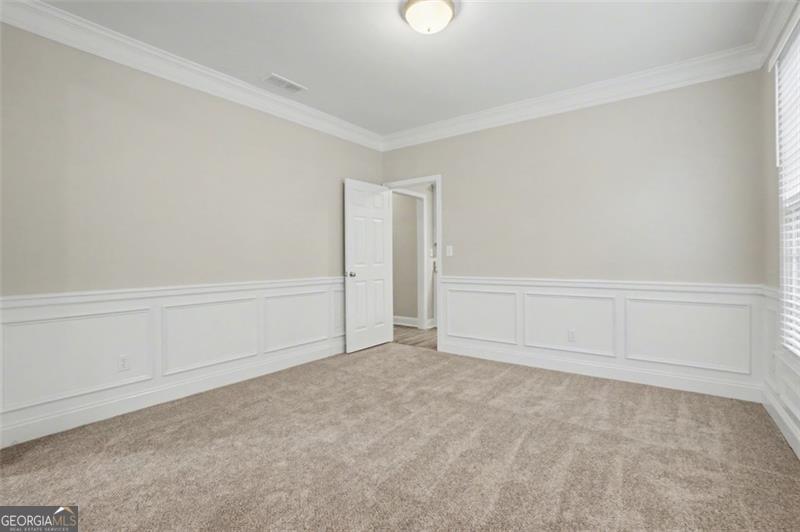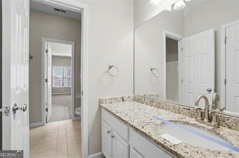 Discover this beautifully maintained home located in Hamilton Grove community of Marietta. A bright, two-story foyer welcomes you and opens to a spacious great room with soaring ceilings, creating an inviting atmosphere ideal for both everyday living and elegant entertaining. The gourmet kitchen features newer stainless-steel appliances, granite countertops, a large pantry, and a convenient breakfast bar. Upstairs, the owner's suite provides a private retreat with a sitting area, a spacious closet, and a tranquil separation from the main living areas. Two additional bedrooms are situated on the opposite wing of the home and are connected by a Shared Bathroom. A main-level guest bedroom with a full bath offers added flexibility for visitors or multi-generational living. The level, private backyard is fully fenced with a wooden privacy fence and offers the perfect setting for outdoor entertaining or quiet enjoyment. Based on a prior listing, the new roof was installed in March 2022. All new interior paint, new carpet, new kitchen appliances. Residents of Hamilton Grove enjoy resort-style amenities including a swimming pool, playground, and clubhouse, making this exceptional home truly move-in ready and designed for comfort, style, and convenience. Some images in this listing have been virtually staged.