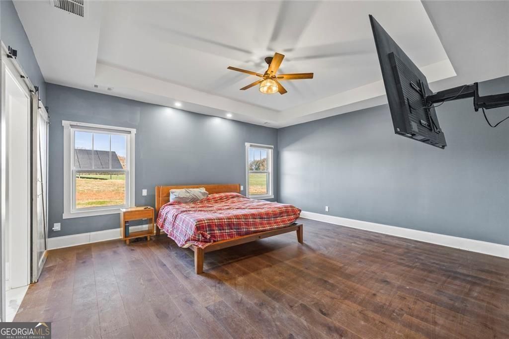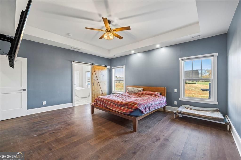 Welcome home to peaceful country living with modern efficiency on 2 beautiful acres in Commerce, Georgia. This thoughtfully designed home, just four years old, offers the perfect blend of space, style, and smart features. Inside, the primary bedroom is conveniently located on the main level, creating an easy and functional layout ideal for everyday living. The open layout is highlighted by sleek quartz countertops that elevate both everyday living and entertaining, adding a clean, upscale touch to the kitchen and gathering areas-perfect for entertaining or quiet nights at home. A whole-home water filtration system delivers fresh, clean water throughout the house, adding an extra layer of comfort and peace of mind. Energy efficiency truly sets this home apart. The solar panel system features a robust 10.56 kW DC setup paired with a 15 kWh battery, offering significant savings on utility costs along with reliable backup power. Solar panels are paid for and not leased, just installed November 2025 with a 40 year warranty on the panels and a 15 year warranty on the battery. Outside, the expansive two-acre lot provides room to relax, explore, garden, or expand, all while enjoying the tranquility of country living. With modern features, generous land, and a highly desirable layout, this Commerce property is a rare opportunity to enjoy space, efficiency, and comfort all in one place.