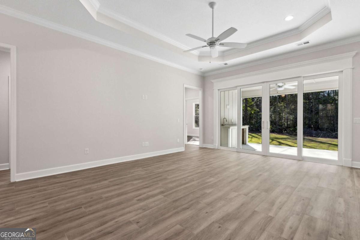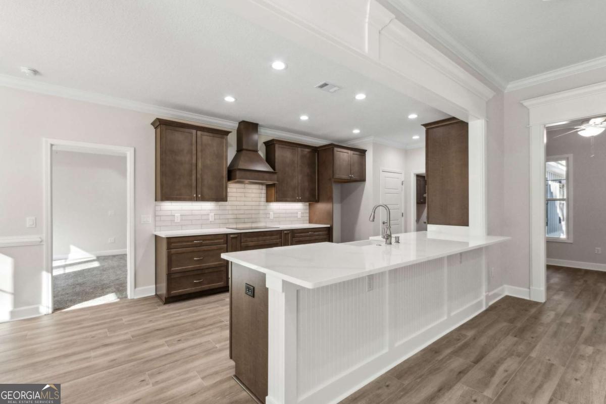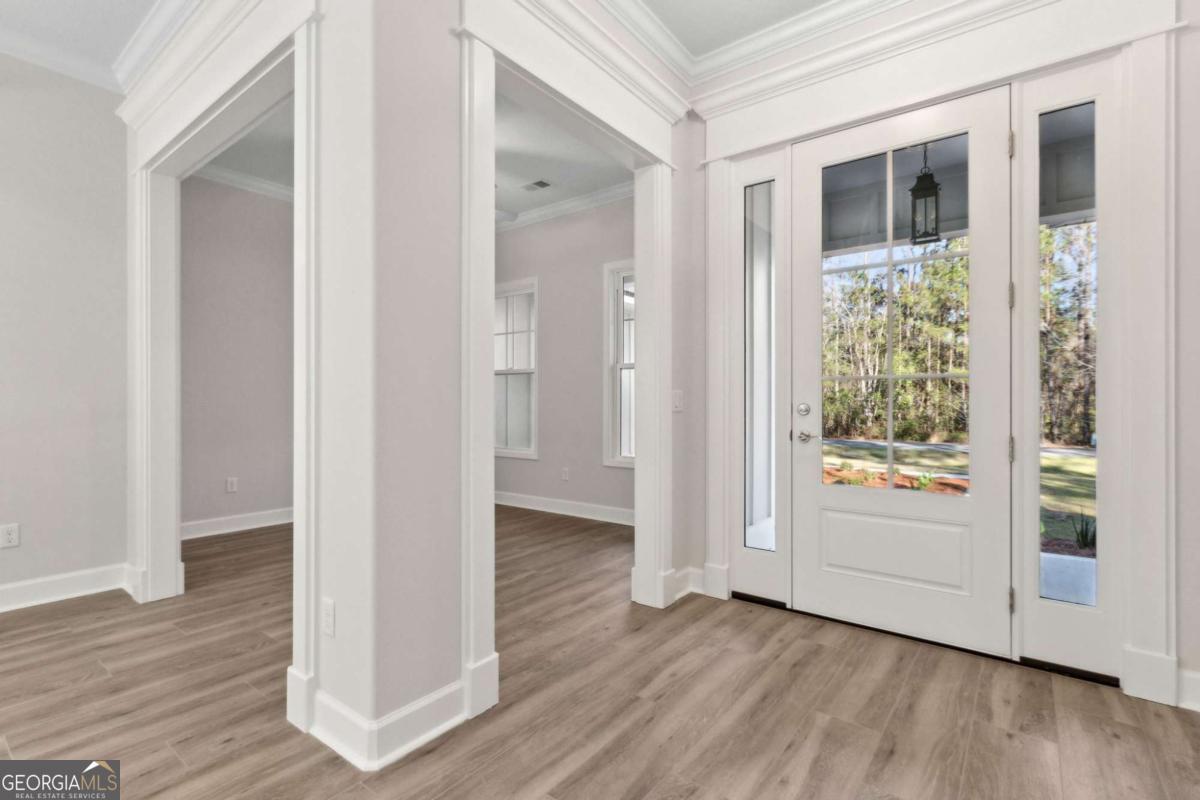 New construction built by Josselyn Homes. Estimated Completion mid February 2026. Located on almost a 1/2 acre lot in the gated Satilla River Landing Subdivision. This 4 bedroom 3 bath home features maintenance free board & batten siding, a 3 car side load garage, radiant barrier roof sheathing, & a split floor plan. The kitchen boasts an open peninsula kitchen, quartz counter tops, cooktop with custom hood vent, separate oven/microwave wall unit, custom cabinetry & stainless steel appliances. The primary suite includes a double vanity, free standing tub, & tile walk-in shower. A must see home offering many upgrades to include custom wood shelving throughout, electric fireplace in the living room, recessed LED lighting, wood look tile flooring, & a summer kitchen on the covered back porch **Interior pictures from previously constructed property; finishes may vary.** Seller is licensed Real Estate Agent in the state of GA & related to listing Broker.