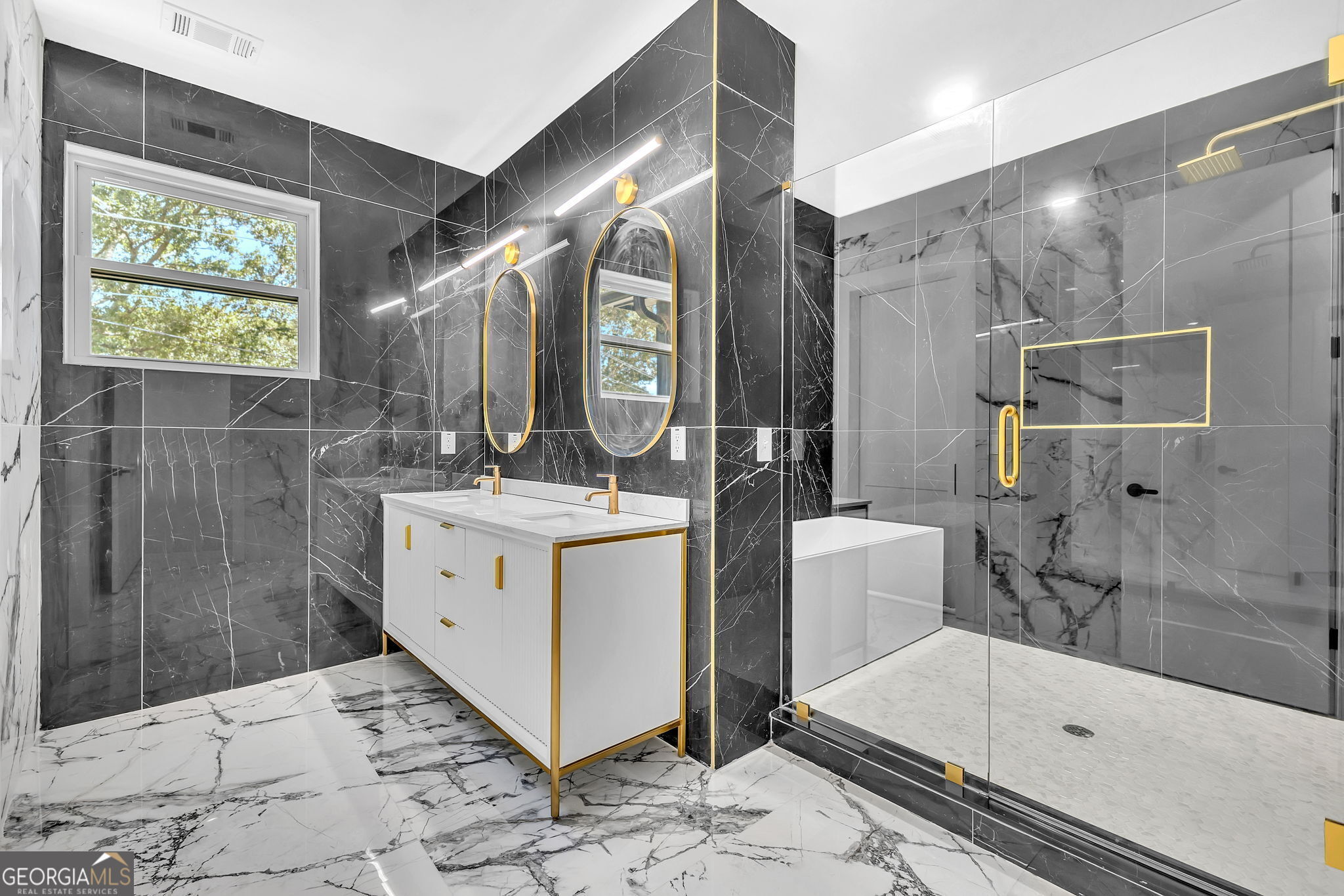 - Interior FeaturesDouble Vanity, High Ceilings, Separate Shower, Soaking Tub, Walk-In Closet(s)