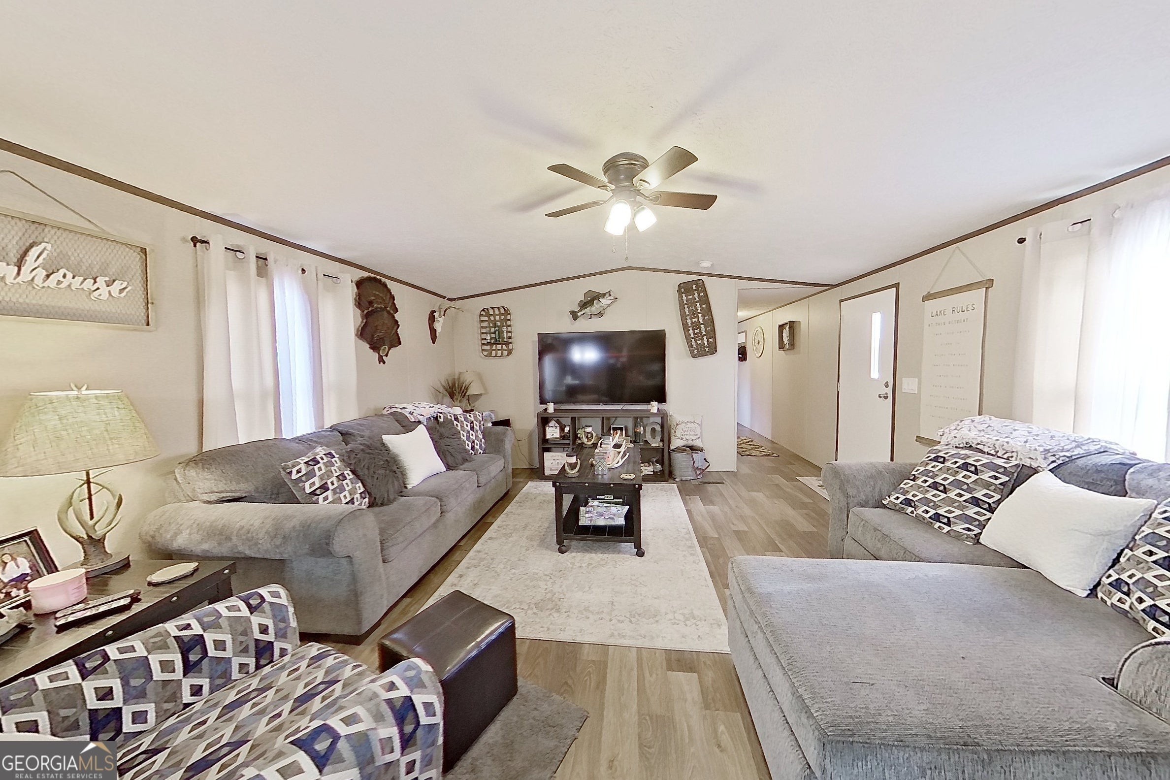 It's All About the Lake Life!! Nestled on 2.4 serene acres, this 3-bedroom, 2-bath mobile home invites you to embrace the ultimate lake life experience. With a welcoming open-concept layout, the living area flows seamlessly into the kitchen and dining spaces, creating the perfect hub for gatherings or quiet evenings at home. You'll love the stylish LVP flooring throughout, offering both durability and a modern touch. The split floor plan offers privacy with the primary suite on one side and additional 2 bedrooms and full bath on the other. Step outside and you'll find plenty of space to enjoy nature, from the expansive yard to the peaceful walk down to the water. One of the standout features of this property is the dock, which has been mostly rebuilt, offering you a sturdy and inviting spot to launch your boat, fish, or simply sit back and enjoy the water views. For even more convenience, the Sealey Boat Landing is just right down the road. Whether you're dreaming of a weekend getaway, a fishing haven, or a year-round retreat, this property is a gem that lets you live life by the water.