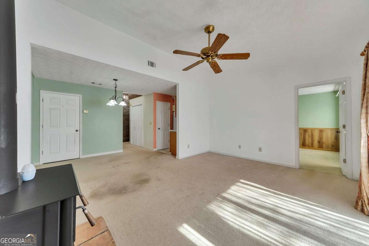 Sought-after location nestled in Joshua's Landing, just a short stroll or golf cart ride to vibrant Downtown Woodstock. This spacious home welcomes you through an inviting sunroom with tile flooring-the perfect spot to relax with your favorite beverage. The main living area features an open-concept design with a family room accented by a freestanding wood-burning fireplace, a dining area, and a kitchen with updated countertops and all appliances included. The primary bedroom offers an adjoining bathroom for added convenience, while two additional bedrooms share a hall bathroom. The laundry area is thoughtfully located near the bedrooms. Upstairs, a bonus loft provides ideal flex space for a home office, playroom, or media area. Joshua's Landing offers a community pool and tennis courts, along with a low monthly fee that includes landscaping. Located at 224 Goshen Lane, this home delivers an unbeatable lifestyle with top-rated restaurants, entertainment, and easy access to the Greenprints Trail System right at your doorstep. Live where convenience meets charm-this is Woodstock living at its best.