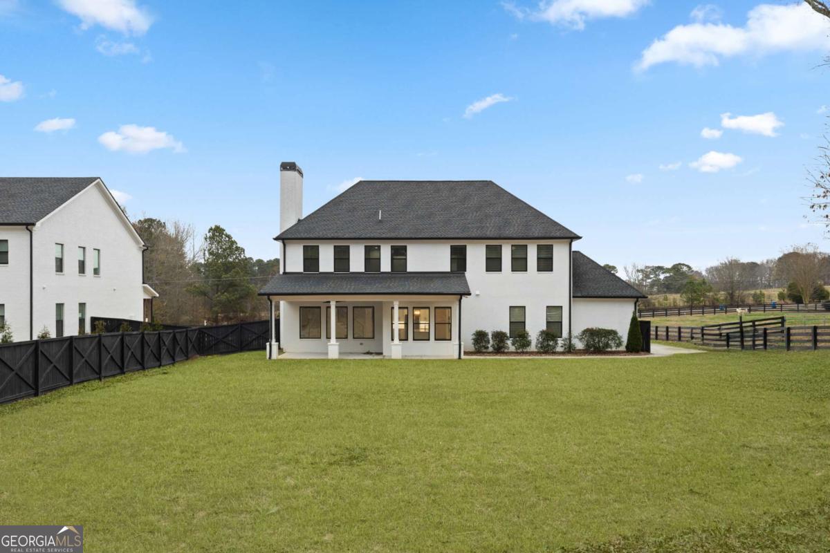 Welcome to 2381 Jones Phillips Rd, a thoughtfully designed 2022 custom-built modern farmhouse offering space, privacy, and quality rarely found in today's market. Situated on a .91-acre gated lot with a long private driveway, this home delivers the perfect balance of refined design and everyday livability. Featuring 5 bedrooms, 4.5 bathrooms, and with just under 4,200 square feet, the layout is ideal for families who need room to grow, entertain, and work from home. The main living area impresses with 12-foot ceilings, coffered ceiling with exposed wood beams, and custom built-ins, creating a warm yet elevated gathering space. The kitchen anchors the home with a large island, farmhouse sink, upgraded fixtures, quality cabinetry, and seamless flow into the living and dining areas; perfect for hosting or everyday family life. Thoughtful upgrades include modern lighting throughout, a custom brick mailbox column, and added cabinetry in the laundry room for enhanced storage and function. The primary suite is a true retreat, offering generous space, a spa-inspired bath, and walk-in closet designed for comfort and ease. Additional bedrooms provide flexibility for guests, a home office, or multi-generational living. Step outside to a covered back patio designed for entertaining, with ample space for a custom outdoor kitchen, lounge furniture, and even a hot tub. The expansive backyard offers plenty of room to build a pool, creating a private outdoor oasis tailored to your lifestyle. This home is one of only five custom homes built by Berende Homes, with no HOA, a three-car garage, perfect for storage, hobbies, or extra vehicles. Set back from the road and secured by a gate, the property offers peace, privacy, and a true estate-style feel. Located within the Gwinnett County School District, this area continues to attract families and professionals seeking top schools, larger lots, and high-quality homes, without the density or price tags found in nearby luxury markets. This is not just a home, it's a long-term lifestyle investment.
