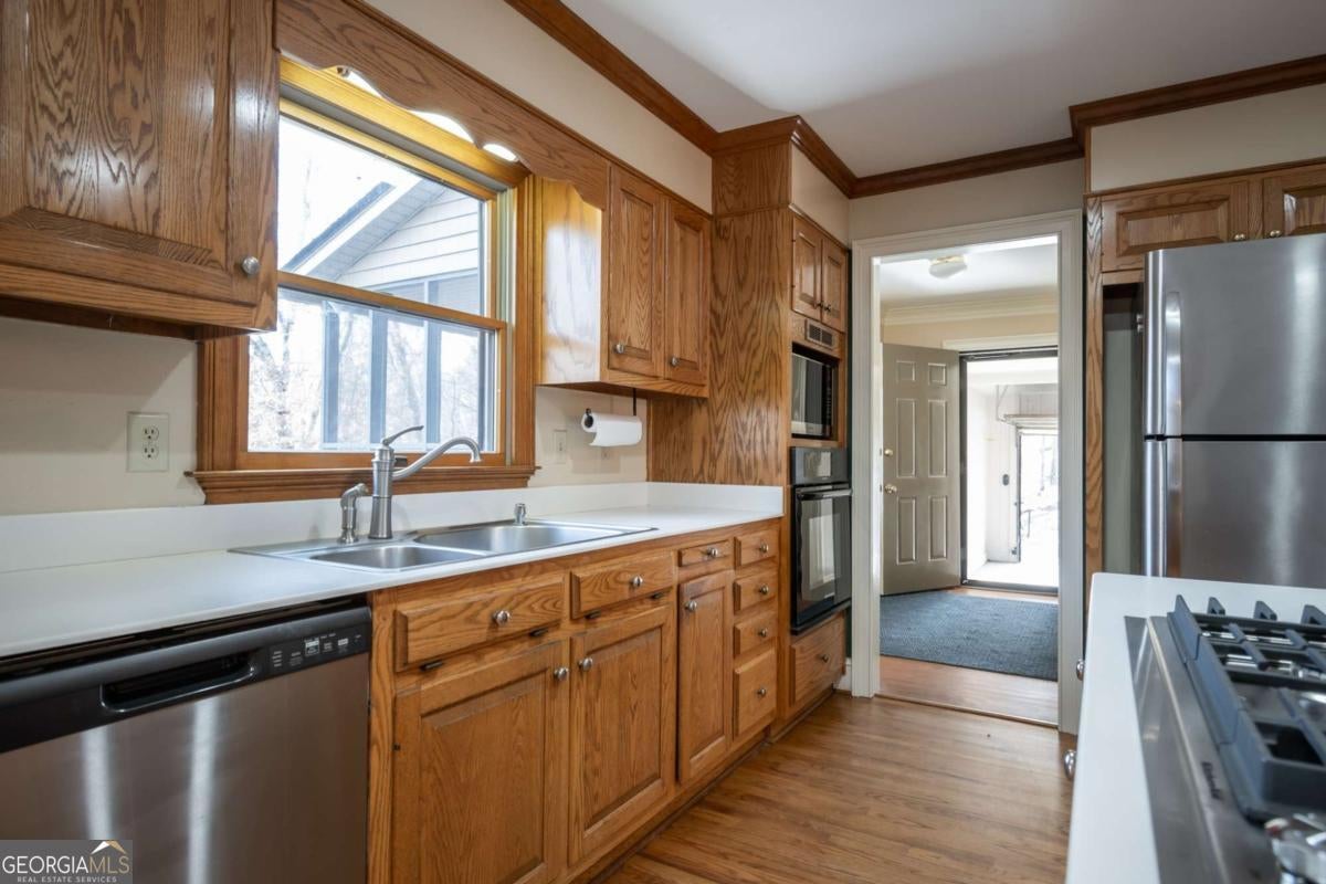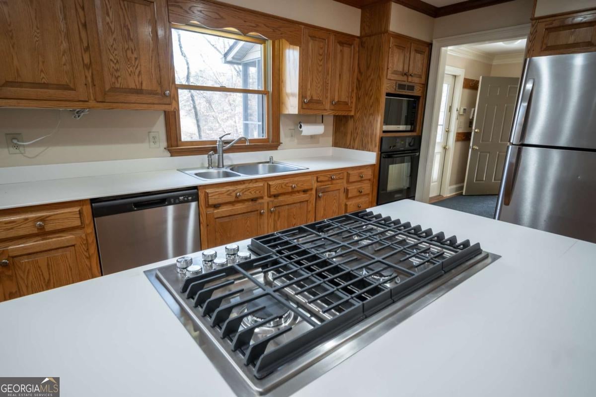- AppliancesCooktop, Dishwasher, Dryer, Gas Water Heater, Ice Maker, Microwave, Oven (Wall), Refrigerator, Stainless Steel Appliance(s), Washer