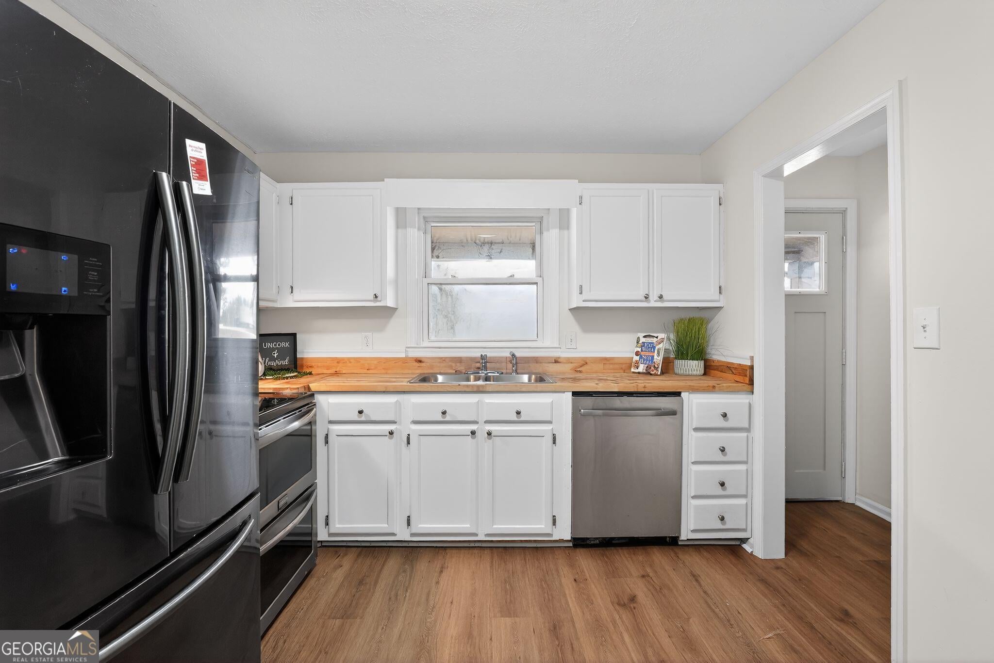 Enjoy a newly renovated in-ground pool as the centerpiece of this beautifully updated country-style home set on 1.82 private acres in Sharpsburg. Fresh interior and exterior paint, new luxury vinyl plank flooring, new carpet, and updated interior lighting create a bright, move-in ready feel throughout. The spacious interior features soaring ceilings, warm wood-accent details, a sunroom filled with natural light, and an inviting great room with flexible living space. The kitchen has stainless steel appliances, light-colored cabinetry, and butcher block countertops. Outdoor living is enhanced by the renovated pool with new equipment, a remodeled shed, and a peaceful, tree-lined setting offering space and privacy. This property blends modern updates with rustic character in a serene Coweta County location. "Some photos have been digitally modified"