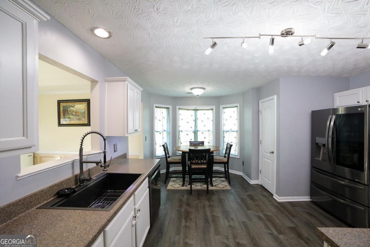 Full of warmth and timeless charm, this craftsman-style ranch is situated in Jackson County's Anniston Place, an HOA-free community, prized for its convenient proximity to the new Oak Grove Publix Shopping Center and easy access to Athens. Designed with a sought-after, single-floor plan that offers formal details, this home not only provides functionality but comfortable every day living. Showcased features include newer luxury vinyl plank floors throughout the living areas-adding durability, vaulted ceilings, inviting light-filed rooms and arched entry ways creating the perfect touch of character. The great room centers around a masonry fireplace and opens effortlessly to a generous formal dining room suited for both everyday meals and special gatherings. A bright, eat-in kitchen allows the home chef to stay connected to guests with the pass-thru window, features plentiful cabinet space, expansive countertops updated track lighting, pantry with shelving system and a standout upgraded appliance package that is sure to impress. It even includes the refrigerator. The kitchen effortlessly lends space to the breakfast area. Privately arranged down the left hallway, you can find the cozy bedrooms and baths. Each bedroom cohesively comes together with carpet flooring, ceiling fan light fixtures and ample closet storage. At the end of the hall the owner's suite stands out with its larger proportions, spacious closet- including a linen closet for added convenience, and a private ensuite full bath complete with all the expected amenities, including a garden tub. Outdoor enjoyment is encouraged with the open-air patio overlooking the huge, fenced rear yard. Desirable attributes, a functional layout, and a highly convenient location come together to make this property an inviting place to call home.