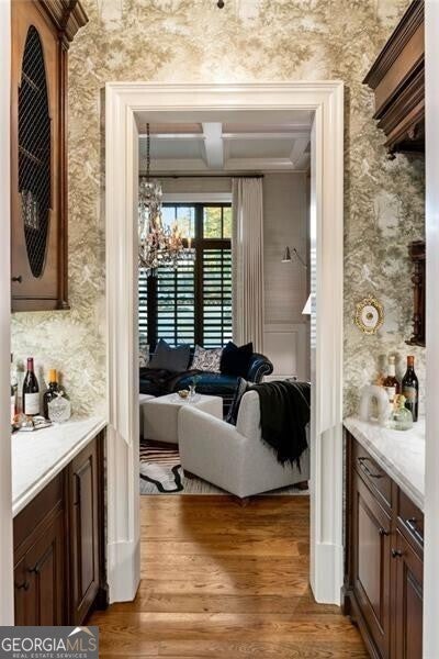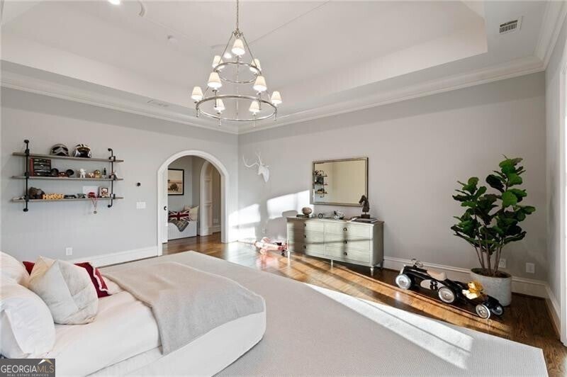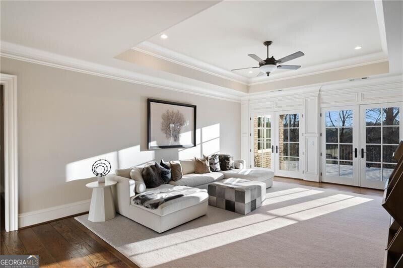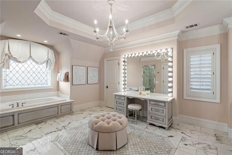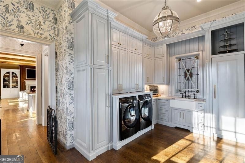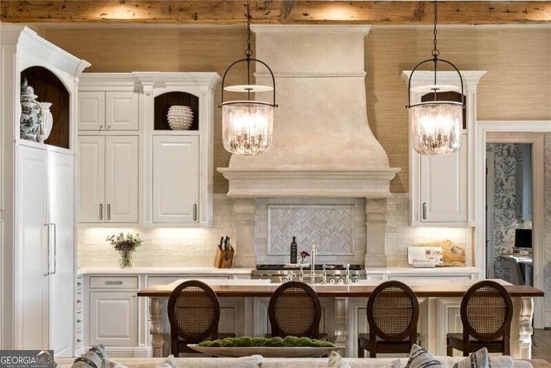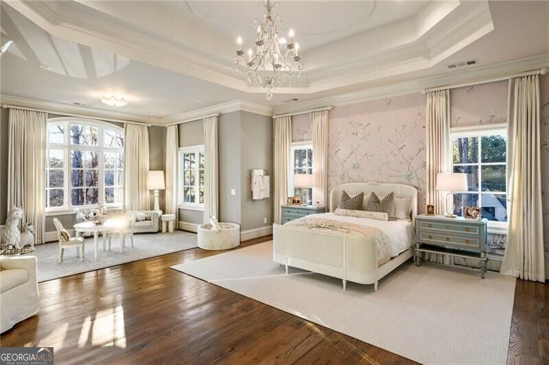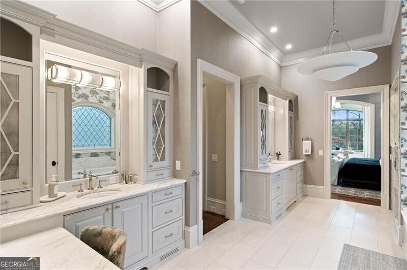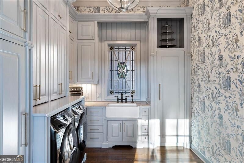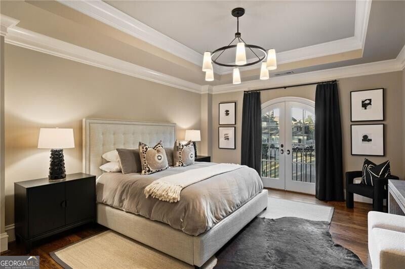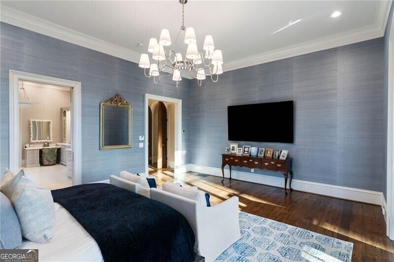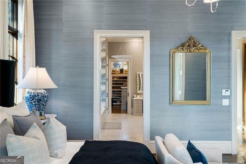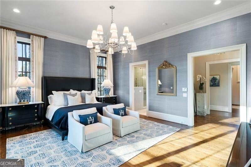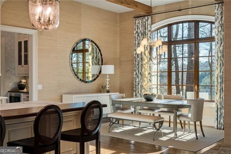 Discover an unparalleled experience in The River Club, where luxurious living meets a refined community, creating an experience unmatched anywhere else. Embrace a lifestyle of sophistication and leisure, where every day feels like a getaway in an exceptional neighborhood. This magnificent estate offers designer elegance with breathtaking views of the 13th hole of the golf course and lake, ensuring total privacy with the serene Chattahoochee River just beyond. The backyard is beautifully enhanced by an elegant English Garden-style landscape, creating a tranquil outdoor retreat. Upon entering, you are greeted by a welcoming foyer that flows seamlessly into the stylishly appointed martini room, which exudes a moody and sophisticated ambiance while also offering the versatility to serve as a formal dining room. The attention to detail is immediately apparent, with custom metal handrails adorning the staircase leading to the second floor. The expansive fireside great room, adorned with rustic wood beams, opens to a meticulously designed kitchen and breakfast room, perfect for both entertaining and everyday living. The kitchen extends to include a charming coffee bar area, complemented by a gorgeous walk-in butler's pantry, enhancing functionality and style. Double french doors lead to an outdoor retreat featuring a cozy fireplace, creating a seamless indoor-outdoor flow that enhances the overall ambiance. The luxurious primary suite is conveniently located on the main level and features distinctive herringbone-pattern hardwood floors that highlight the elegance of the space. The en-suite bath includes a separate soaking tub, an oversized zero-entry shower, dual vanities, a ladies' makeup vanity, and spacious his and her closets. A light-filled sitting room completes this exceptional suite. Ascending to the second floor, you will find three well-appointed secondary bedrooms. Two of these bedrooms are mirror images of each other, each boasting spa-like baths, sitting areas, and expansive closet space. Both suites enjoy access to private rooftop terraces with picturesque views of the lake and golf course. Additionally, convenient elevator service provides access to all three floors. The lower level is designed for entertaining and includes a custom bar, media room, state-of-the-art home theater, home gym, a massage room, and an oversized en suite guest bathroom. This home features an array of unique finishes that are truly one-of-a-kind, including reclaimed beams, exquisite ceiling treatments, distinctive door hardware, and custom lighting fixtures. Welcome home to The River Club where residents enjoy a wealth of amenities, including a championship golf course, a state-of-the-art fitness center, and a stunning clubhouse with elegant dining and event spaces. The resort-style swimming pool features Olympic lanes, a thrilling waterslide, and comfortable cabanas, while tennis and pickleball courts offer additional recreational opportunities. With picturesque walking trails, serene lakes, and beautifully landscaped parks, residents can embrace an active lifestyle and a strong sense of community.