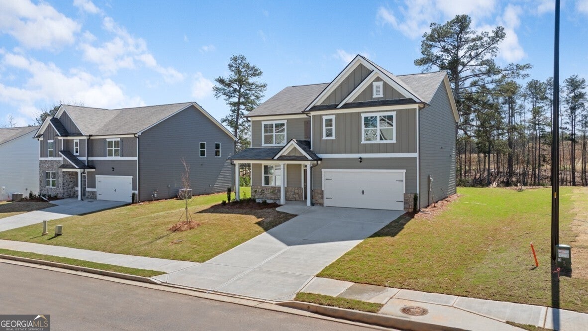 Welcome to 246 Thompson Ridge Lane, a New Construction home with a beautiful lake view in the Thompson Ridge Community of Dallas, GA. Thompson Ridge is conveniently located near shopping, dining, Bentwater Golf & Country Club, and the Seven Hills community. Featuring the Hayden floorplan, this homesite offers 5 bedrooms, 3 bathrooms, a 2-car garage, and 2,511 sq. ft. of living space. Entering the front door, you'll come upon a flex room through an inviting cased opening - the perfect space for a dining room, study, or playroom. Further in the home, the spacious kitchen stuns with its large center island, walk-in pantry, stainless-steel appliances, and a dining area. The living room is the ideal space to gather with loved ones or relax after a long day of work. A bedroom and full bathroom round out the main level, great for guests or in-laws. Up the stairs to the second floor, you'll come upon the primary suite: a spacious bedroom and bathroom with a double vanity, separate tub and shower, water closet, and large walk-in closet. The upstairs living room is centrally located between three additional bedrooms, the third bathroom, and the laundry room. The Hayden's upstairs is also rich with storage space, with two linen closets and a storage closet off the loft area. Does the Hayden at 246 Thompson Ridge Lane sound like the perfect fit for you? Then contact us at Thompson Ridge in Dallas, GA and let us give you a tour!
