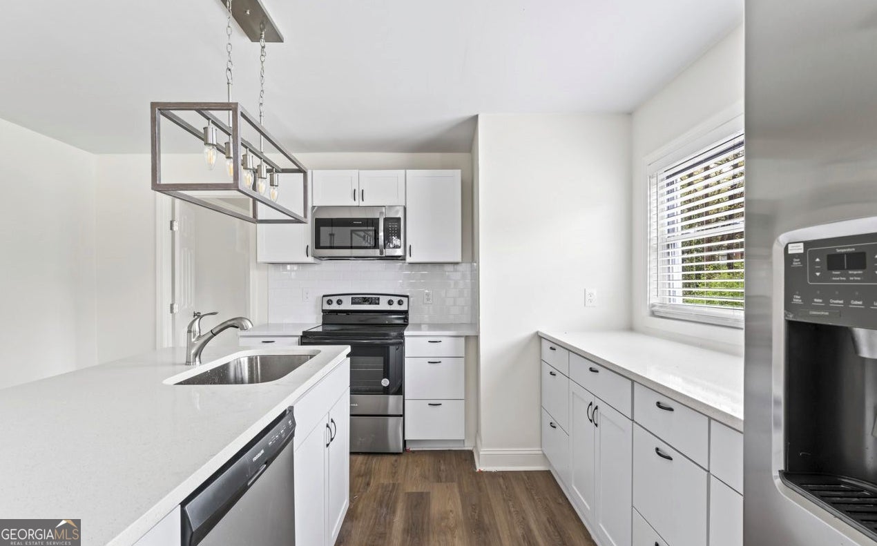 Discover this beautifully updated residence at 6477 Camp Street, where modern upgrades meet a versatile floor plan designed for today's lifestyle. This turn-key home features 3 spacious bedrooms and 2 stylishly renovated bathrooms, plus a bright flex room that easily transforms into a formal dining room, home office, guest space or a 4th bedroom to suit your needs. The heart of the home is a stunning kitchen equipped with crisp white cabinetry, premium quartz countertops, and brand-new stainless steel appliances, all flowing into an open living area with fresh flooring and contemporary finishes. Enjoy total peace of mind with major systems-including the roof, HVAC, and water heater-all only one year old. Relax on the covered rocking chair front porch or host weekend gatherings in the private, fully fenced backyard. The home feature a privacy fence around the front and rear of the home. New gutter with gutter guards were installed in 2024 Located just minutes from shopping and Hartsfield-Jackson International Airport, this move-in-ready gem offers the perfect combination of reliability, style, and convenience in the heart of Riverdale.