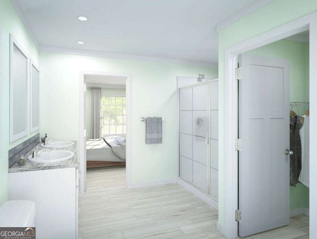- Interior FeaturesDouble Vanity, Separate Shower, Split Bedroom Plan, Walk-In Closet(s)
