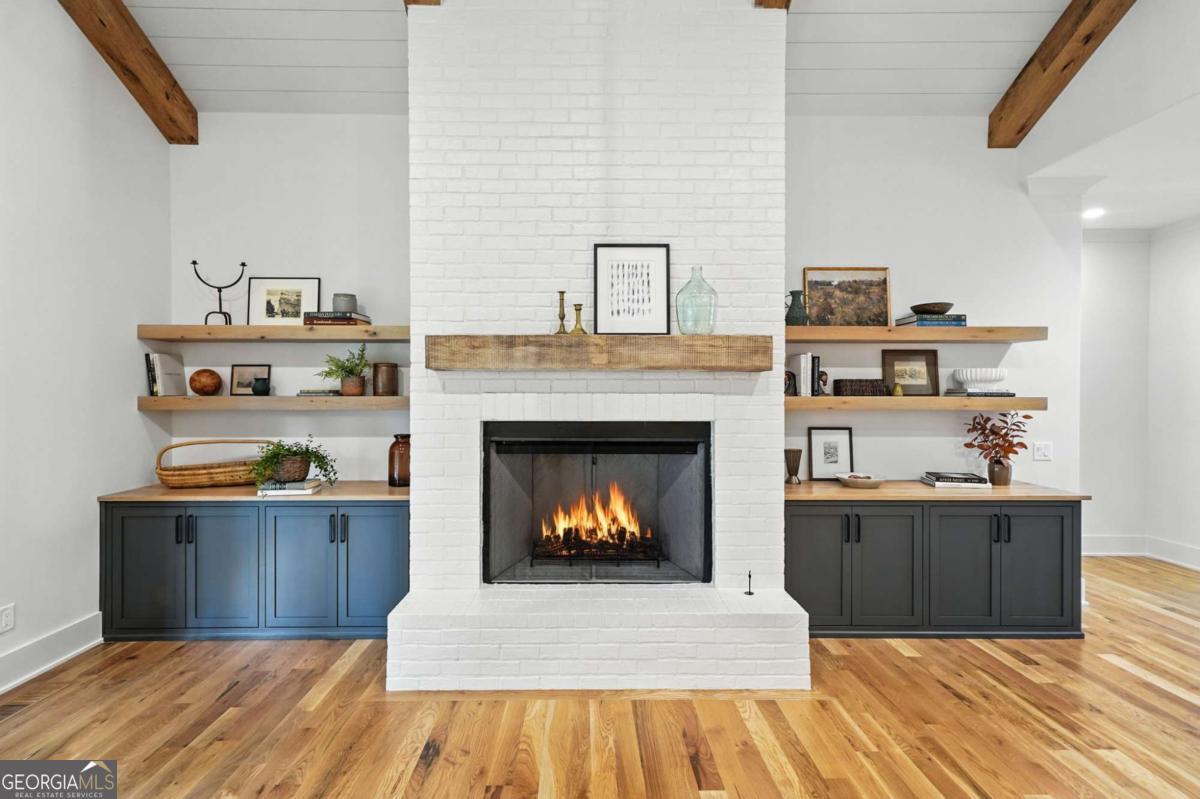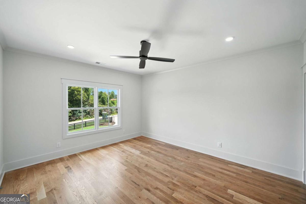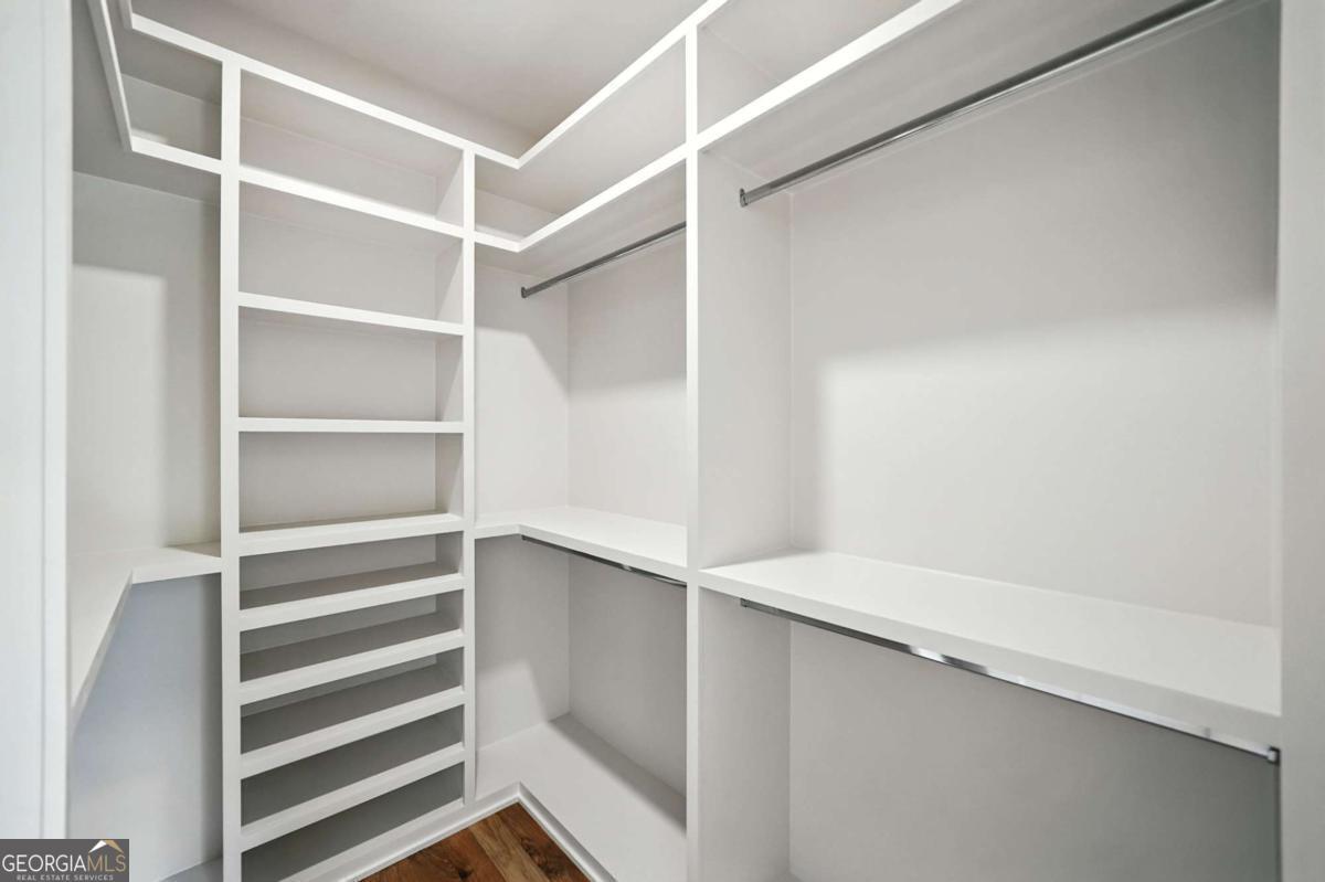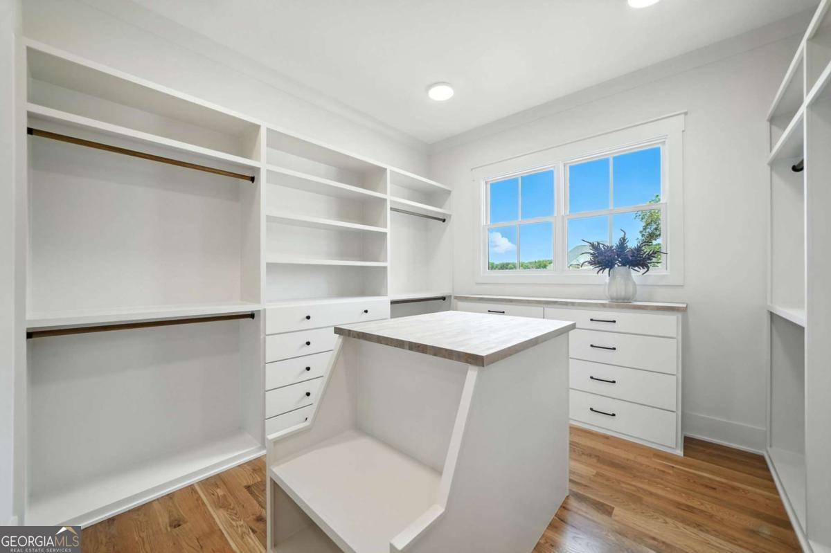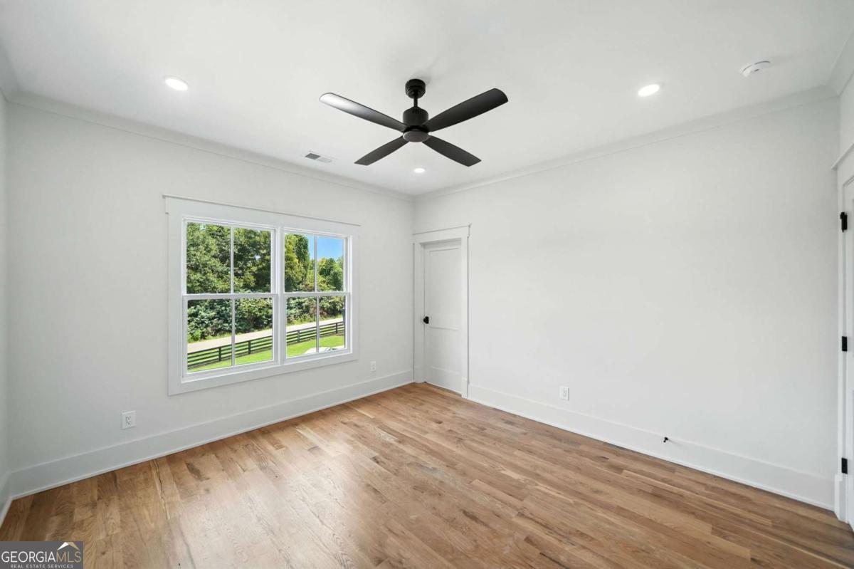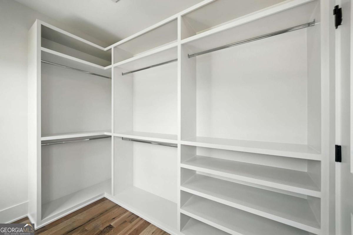 Exceptional custom-built farmhouse featuring six bedrooms, five and a half bathrooms spread across two spacious and thoughtfully designed levels. The main level includes three bedrooms, each with its own private ensuite, while the upper level offers a secondary primary suite or bonus room with an ensuite bath, a built-in kitchenette, and two dedicated computer workspaces-ideal for flexible living needs. A large, unfinished basement is stubbed for a full kitchen, a full bathroom, and a half bath, making it perfect for a future in-law suite or separate apartment. It also includes a built-in vault/panic room for added security. The chef's kitchen is a standout, featuring a Wolf 48" gas range with six burners and a griddle, a Sub-Zero 48" panel-ready refrigerator, Cove dishwasher, microwave drawer, a custom plastered hood accented with white oak, and high-end Delta plumbing fixtures. Artisan cabinetry and quartz countertops complement the space, white oak flooring flows throughout the main living areas and bedrooms. The bonus room is finished with Berber carpet. Custom touches include white oak beams with a shiplap ceiling in the great room, coffered ceilings in the dining area, white oak beam details in the office, wrought iron stair railings with oak treads, designer tile work in all bathrooms and laundry rooms, and custom built-ins in all closets. There are three laundry areas: a luxury main-level laundry room with a built-in dog wash, a secondary laundry upstairs, and a private laundry in the primary suite. A walk-in attic provides easy access to HVAC systems. The home is equipped with a Trane 17-SEER variable-speed HVAC system on the main level and a separate system for the upper level, as well as a tankless water heater. Exterior features include board and batten cement siding on the main and upper levels, painted brick on the basement level, a front porch with brick pavers, and a rear deck with fireplace, Trex-style decking, and a gas grill stub. The property is finished with Sierra Pacific aluminum-clad windows and doors, entry columns wired for lighting, four-board fencing on three sides to match the subdivision, and a fully irrigated, professionally landscaped yard. A natural gas line is stubbed for a generator, and the backyard is designed with space for a future pool. Additional features include a three-car garage and an oversized parking pad. This home offers a rare combination of luxury, flexibility, and quality craftsmanship, making it an ideal fit for growing families, multigenerational households, or buyers who appreciate elevated design and long-term versatility. Conveniently located to Kroger, Publix, Northside Cherokee, shops, restaurants and a short drive to downtown Woodstock or the Outlet Mall.