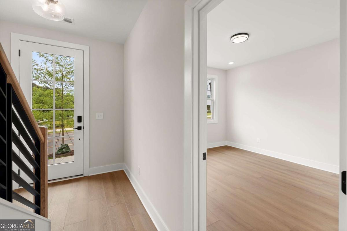 Introducing the Adeline - a contemporary townhome offering 2,160 sq. ft. of luxury across three levels, featuring 4 bedrooms and 3.5 baths. Thoughtfully designed for modern living, this home blends style, comfort, and functionality. The main level includes a private guest suite with full bath and access to the two-car garage. Upstairs, an open-concept living area features 10-foot ceilings, a spacious great room, and a chef's kitchen with KitchenAid stainless steel appliances, quartz countertops, and a large island. The top floor offers a tranquil primary suite with a walk-in closet and spa-like bath, plus two additional bedrooms, a full bath, and laundry. Located in The Gathering, a vibrant new community near downtown Alpharetta, Avalon, and the Alpha Loop, residents enjoy a community garden, firepit, and dog park. Even more exciting - a future mixed-use development will bring restaurants, shops, and entertainment right to the community, offering an urban lifestyle in a suburban setting with unmatched convenience. Experience the perfect blend of luxury, location, and lifestyle-schedule your tour today! Photos are of the actual home. Agent on-site Mon, Tues, Thurs-Sat (10-6) and Wed & Sun (1-6).