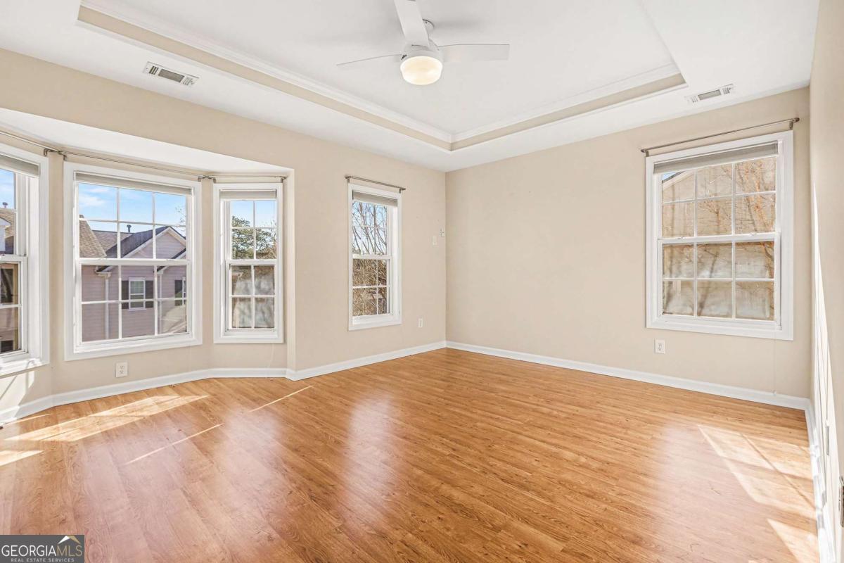 Welcome home to this beautifully updated 3-bedroom, 3-bathroom townhouse that blends style, comfort, and functionality. The home features new laminate flooring, complemented by designer lighting and custom built-ins that add both character and storage. Light neutral paint throughout. All bedrooms offer their own full bathrooms. The spacious primary suite offers a private retreat with a charming additional sitting or flex area, perfect for a home office, reading nook, or dressing space. Updated Master bath with designer cabinets, solid surface countertops and new floor. Loft/flex space offers new custom built-ins providing drawers, cabinets and shelving that double the storage space in the home. Perfect for an adult space, kids playroom or home office. Enjoy cooking in the updated kitchen, complete with stainless steel appliances, a brand-new oven, and ample cabinetry. Washer and dryer are included for added convenience in the laundry area with new custom cabinets. Major system upgrades provide peace of mind, including a newer roof and gutters, and new HVAC system. Step outside to a secluded backyard with a newly stained deck, ideal for relaxing or entertaining in a private outdoor setting. This meticulously maintained, move-in-ready townhouse offers thoughtful updates throughout and is a must-see!