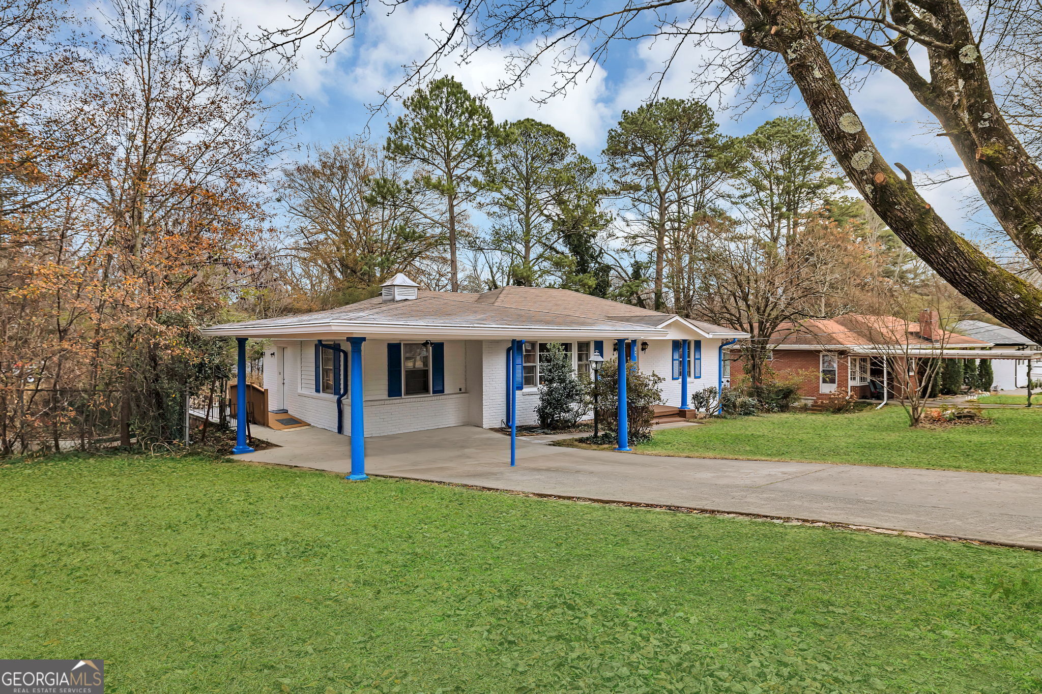 Classic painted brick ranch in a quiet, well-established setting in East Cobb. This 3 bedroom, 2 bath home is nestled on a level lot of a tree-lined street. While this home is move-in ready, it also presents a fantastic opportunity for those eager to add their personal flair and modern updates. With solid bones and classic features throughout, you'll find the ideal canvas to create your dream haven. The eat-in kitchen offers granite countertops and stainless-steel appliances. The large primary suite features a fireplace and private bath. There is an additional bonus room off of the kitchen offering space for an office, workout room, tv room, or more options. The private backyard has a detached garage and additional storage shed. Easy access to I-75. Perfect for those seeking both value and location, this property invites you to reimagine, renovate, and truly make it your own.