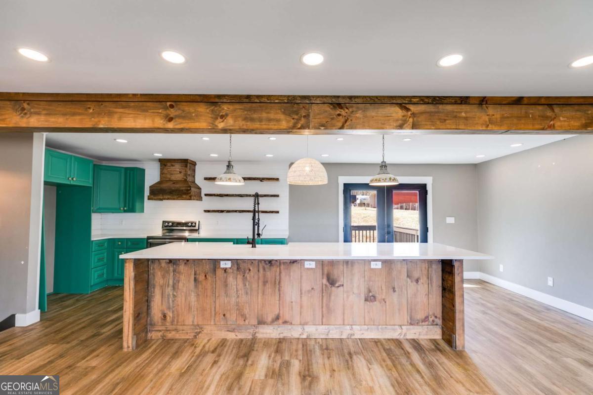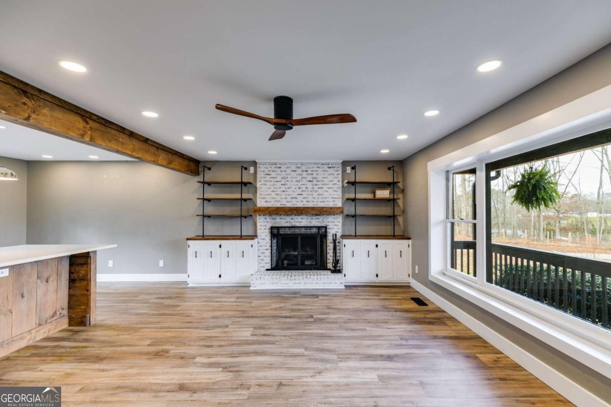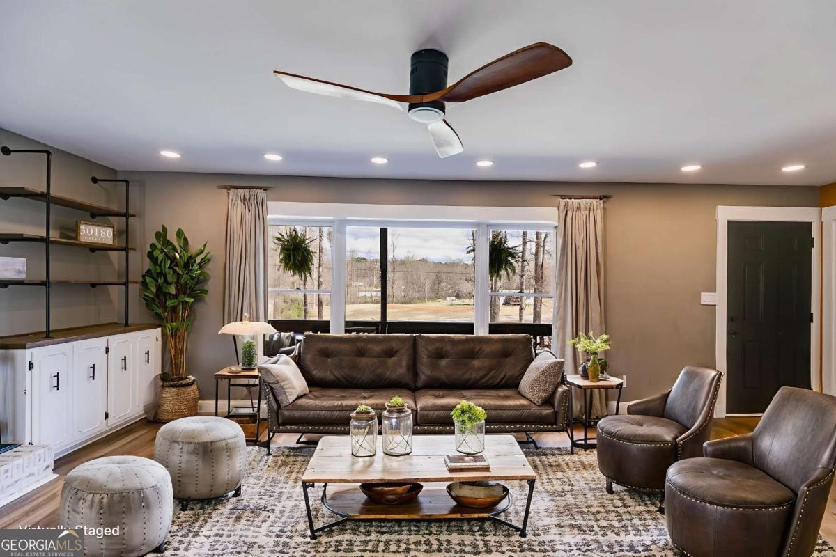 New Year, New Home! Renovated 4BR/3BA on 1.5 Acres with Finished Basement Near I-20 Start the year off right in this fully renovated 4-bedroom, 3-bathroom home that blends modern style with peaceful country living-just minutes from I-20, Villa Rica, and local shops and dining. Set on a quiet 1.5-acre lot, this move-in ready property offers the space, privacy, and updated features buyers are looking for in 2024. Step into a bright, open-concept layout filled with natural light-perfect for everyday living and New Year entertaining. The spacious family room features a wood-beamed ceiling, cozy fireplace with custom built-ins, and oversized windows that bring the outdoors in. The chef-worthy kitchen makes a bold statement with green shaker cabinetry, quartz counters, stainless appliances, farmhouse sink, custom vent hood, open shelving, and an oversized island with bar seating and bonus storage-ready for everything from morning routines to hosting brunch. Three main-level bedrooms include a tranquil primary suite with a spa-inspired bath, complete with subway tile, double rainfall shower heads, a vessel sink, and sleek fixtures. A second full bath offers designer finishes and updated lighting. The finished daylight basement provides an additional 902 square feet of flexible living space, including a fourth bedroom, full bathroom, large bonus room, storage area, and charming details like shiplap walls and a corrugated metal ceiling-ideal for a home office, theater, gym, or guest suite. Step outside and enjoy your private backyard retreat, complete with fruit trees, grapevines, garden space, and a cozy fire pit. A matching storage shed (white with black trim) adds extra functionality to the outdoor living area. Ready for a fresh start? This stylish, move-in ready home offers the perfect blend of comfort, convenience, and character. Schedule your private showing today and make 2026 your best year yet!