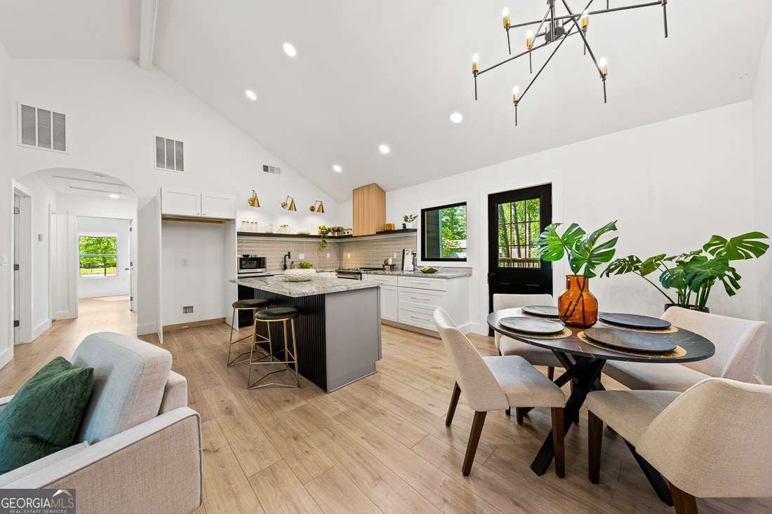 Move into this completely renovated home in the Venetian Hills area of Southwest Atlanta for 0% down payment and fully furnished and decorated as seen! The open floor plan with soaring ceilings seamlessly connects the kitchen, living room, and dining area. The kitchen is a chef's delight with exotic leathered granite countertops, a workstation sink, new appliances, wood design range hood with motion activated vent, and a large island for seating and storage. This home offers 3 bedrooms and 3 full bathrooms PLUS a large versatile flex room that can be used as a 4th bedroom, home office, gym, or media room- whatever suits your needs! The light-filled primary bedroom is a true retreat with a walk in closet and a luxurious en-suite bathroom. The primary bath features double sinks, a large tiled shower with two shower heads and sleek vanity lighting. Next to the primary bedroom are two more rooms, the renovated hall bathroom including a tub, and a laundry room with upper and lower cabinet storage. Don't miss the additional bedroom and third full en-suite bathroom hiding in plain sight behind the recessed bookshelf door in the living room! From the kitchen, open the retractable screen door to enjoy relaxing and entertaining on the brand new back deck built with durable Trex composite material and the fully fenced backyard! Throughout the home are new wide plank laminate floors, recessed lighting, and fresh interior and exterior paint ensuring low maintenance for years to come. All furniture and decorations are negotiable with the property. Extremely convenient location in close proximity to the Westside Atlanta Beltline which offers residents the excitement and energy of urban living combined with the beauty and tranquility of green spaces. The neighborhood is located close to major highways, Cascade Springs Nature Preserve, Mercedes Benz Stadium, Lee + White Food Hall, and Centennial Yards; a sprawling entertainment, retail and restaurant experience expected to be the central hub for the 2026 FIFA World Cup. Take action now and secure your place in this vibrant community that is slated for future growth and success. "Walk through" the house with the 3-D virtual tour!