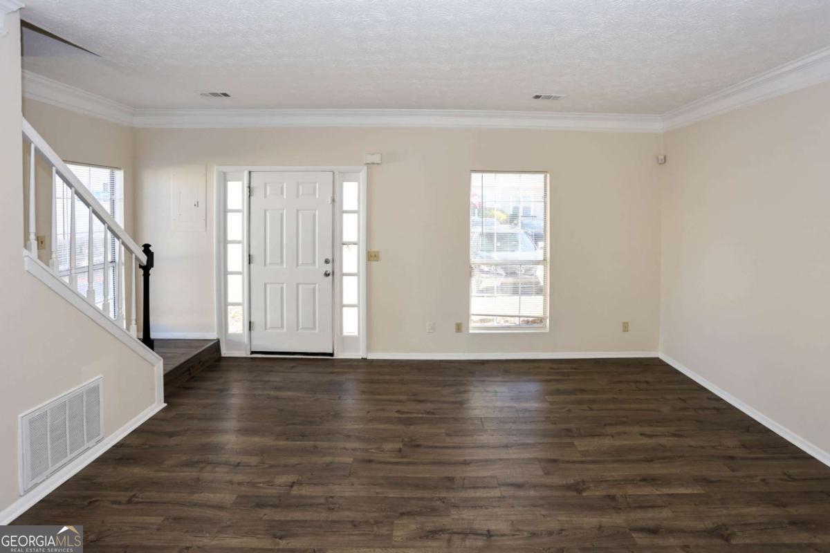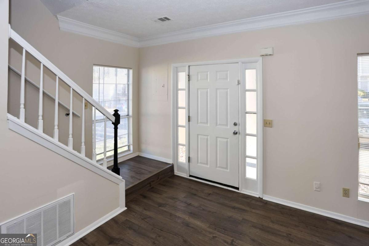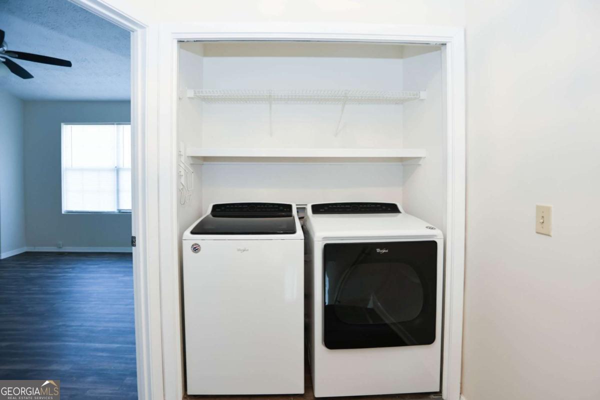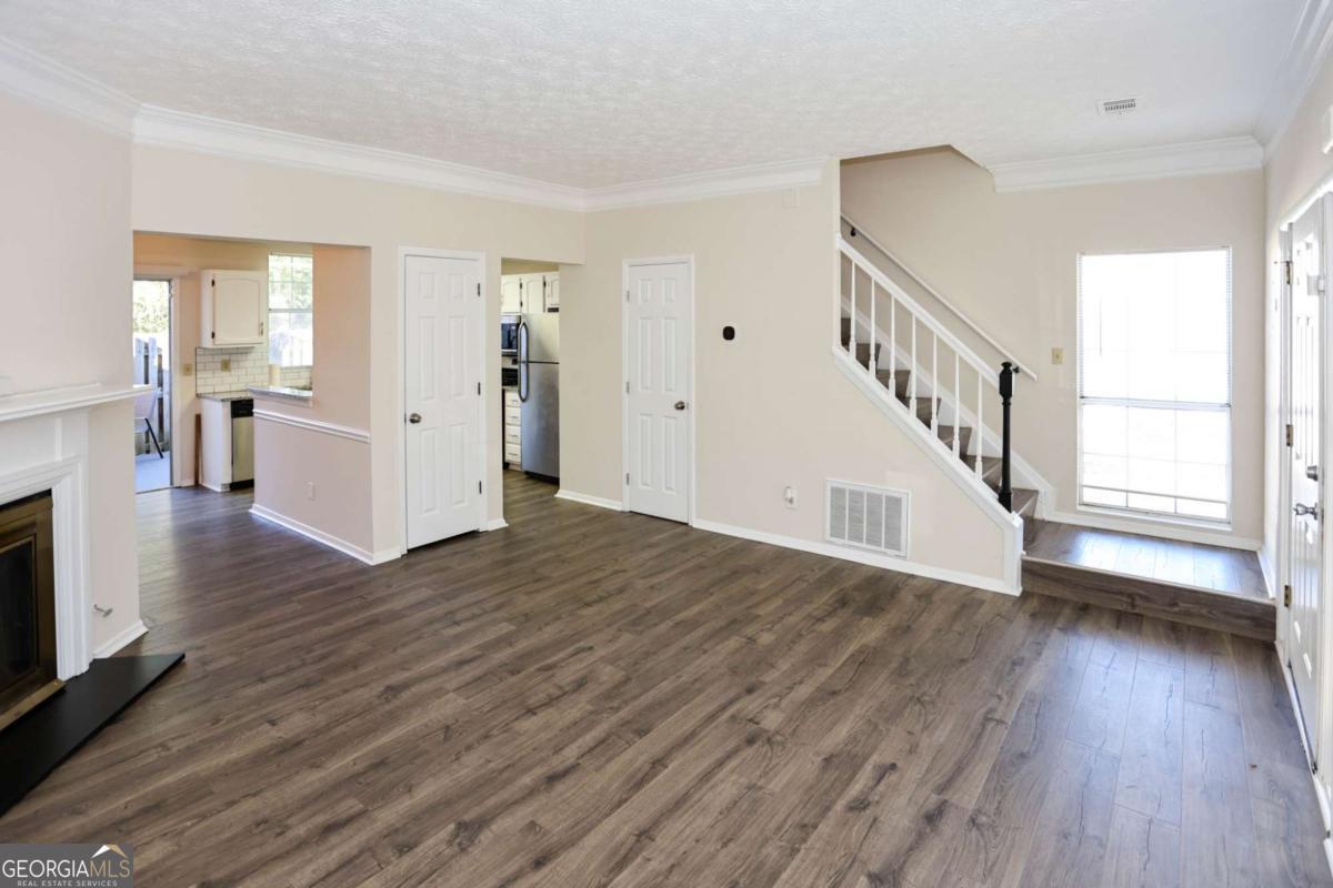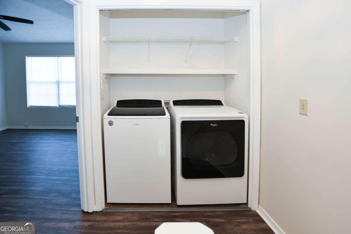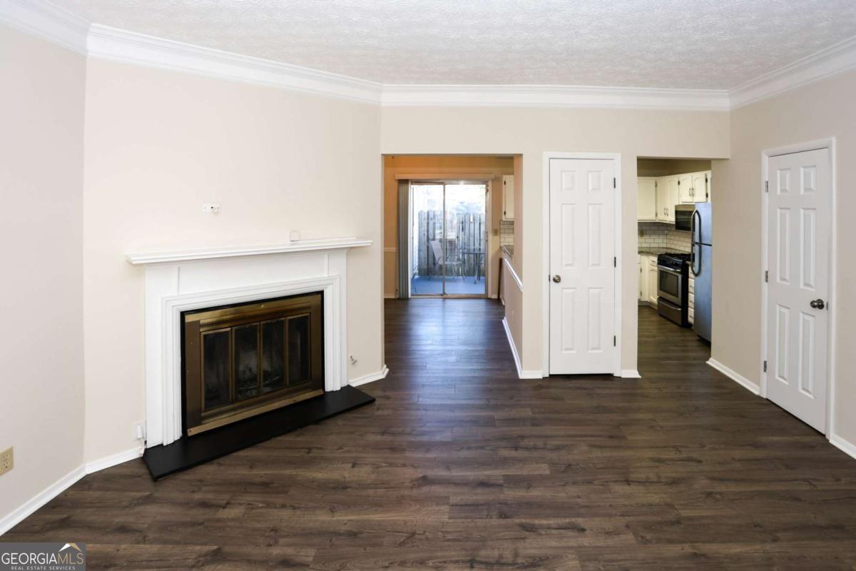Beautiful end unit available in this Fee Simple Townhome gated community Washington Square. Spacious 2 bedroom, 2 bath second story townhome with community living on main level with half bath. Home refreshed with paint and sustainable flooring. Private fenced Patio off of kitchen and dining area. 2 designated parking spots conveniently located in front of the unit. Community features pool, trails and access to park. Perfect for the first time home buyer, students or downsizing. Modest HOA fee of $250 a month for all of this. Excellent location with quick access to !-85, I285 and Doraville Marta Station, Buford Highway Farmers Market