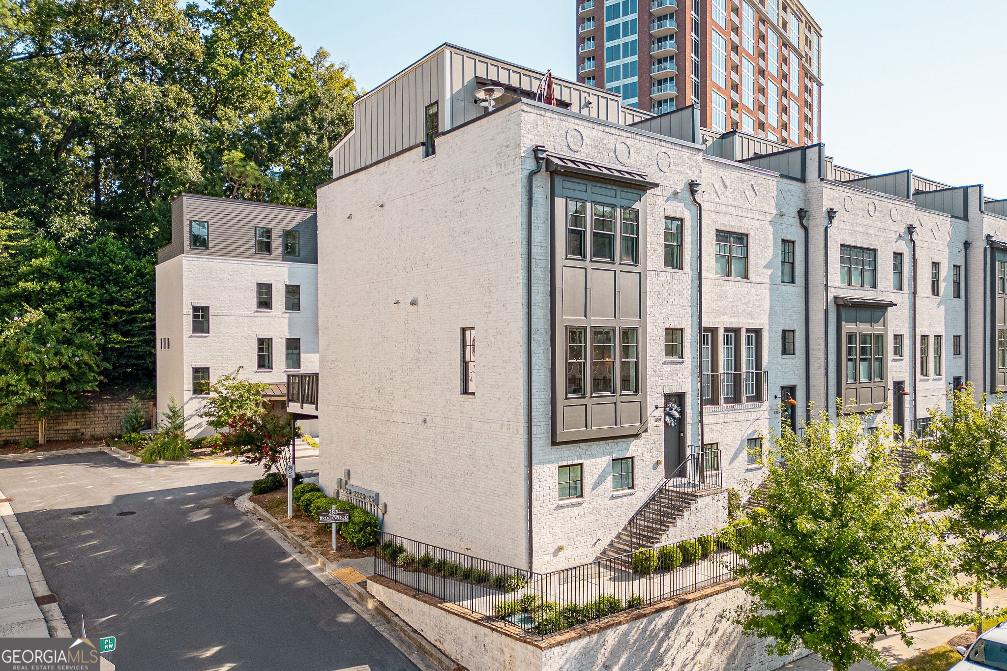 Welcome to 28th at Brookwood: walkable, intown, low maintenance luxury living in Atlanta's most desirable neighborhood. This is your opportunity to live in an immaculately maintained contemporary four-story end-unit townhome under a million dollars, with million dollar views and is the epitome of move-in ready. Don't sweat the stairs-you have your own elevator, which makes moving heavy furniture or decorations light work. The spacious open concept on the main floor is perfect for entertaining while at the same time three outdoor living spaces offer sanctuary retreats. Of course the kitchen has stainless steel Viking appliances, custom cabinets, quartz countertops/backsplash, and a massive island with ample storage. Connected to your kitchen is a powder room and the cozy living room with an elegant gas fireplace surrounded by custom built-ins. The living room flows directly into the gorgeous sunroom and convenient back deck. One story up is your spacious master suite, which includes everything you expect: pristine double vanity, seamless glass framed shower with rain shower head, and a custom closet. Convenient laundry access and an additional bedroom with full bath are just down the hall. The top floor is another show stopper, with two roof top terraces with skyline views, an outdoor gas fireplace outfitted for a TV for fall and winter movie nights. Inside you have another full bath, mini bar, and lounge for winding down after a long day. On the ground floor you have an attached 2-car garage and bedroom that can serve as a guest room or office with another private full bath. Located on a quiet street with ample guest parking, and you're just steps from Piedmont Hospital, the Northside Beltline Trail, both Ardmore Park and Tanyard Creek Park, shopping, restaurants, and quick access to I-75 and I-85.