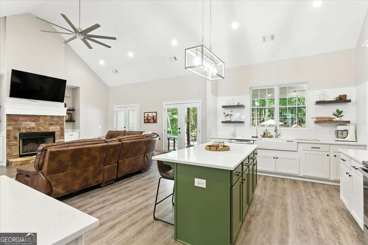**MOTIVATED SELLER** This gorgeous 4-bedroom, 3-bath home is nestled on 6.6 acres of serene country living, offering the perfect mix of privacy, space, and style. With a fresh coat of paint and new Jellyfish lighting that sparkles across the front, this home is as inviting outside as it is inside. Step into the main living area where cathedral ceilings and an open-concept design create a light and airy feel. The chef's kitchen is both functional and beautiful, featuring a large island, farmhouse sink, stainless steel appliances, a walk-in pantry, and plenty of storage. A convenient drop zone off the two-car garage keeps life organized. The luxury vinyl flooring runs throughout the home (bonus room excluded), offering durability and modern elegance. Upstairs, the spacious bonus room/bedroom above the garage gives you flexible space for an office, media room, or guest suite. Outside, enjoy peaceful mornings on the large front porch or entertain on the oversized covered rear patio overlooking the fenced backyard. Don't miss the sunflower garden that blooms each year, adding charm and color to your outdoor retreat. This home is the perfect blend of modern upgrades and country charm, giving you space to breathe and grow while still feeling warm and welcoming.