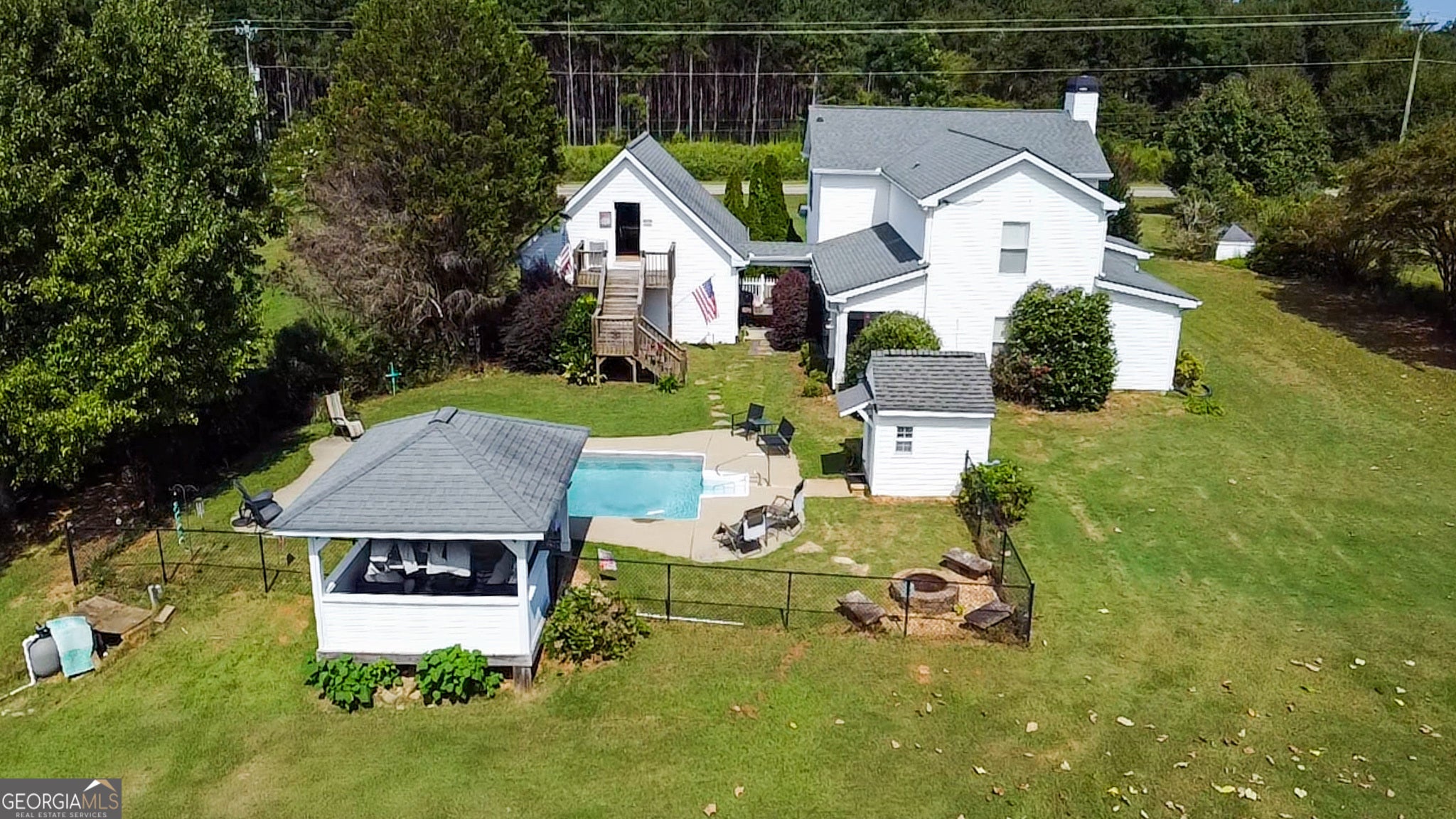 Welcome to this beautiful 4-bedroom, 2.5-bath home situated on 2 serene acres, complete with an inground pool and outdoor half bath for convenience. Inside, you'll find a spacious layout designed for both comfort and entertaining, including a cozy wood-burning fireplace, double ovens in the kitchen, and inviting front and interior porches. The home also features a game room over the 2-car garage with automatic doors, perfect for recreation or extra living space. Outdoor living shines with a circle driveway, charming gazebo, and plenty of room to gather around the pool. A true retreat with space and style, ready for its next owners to enjoy!
