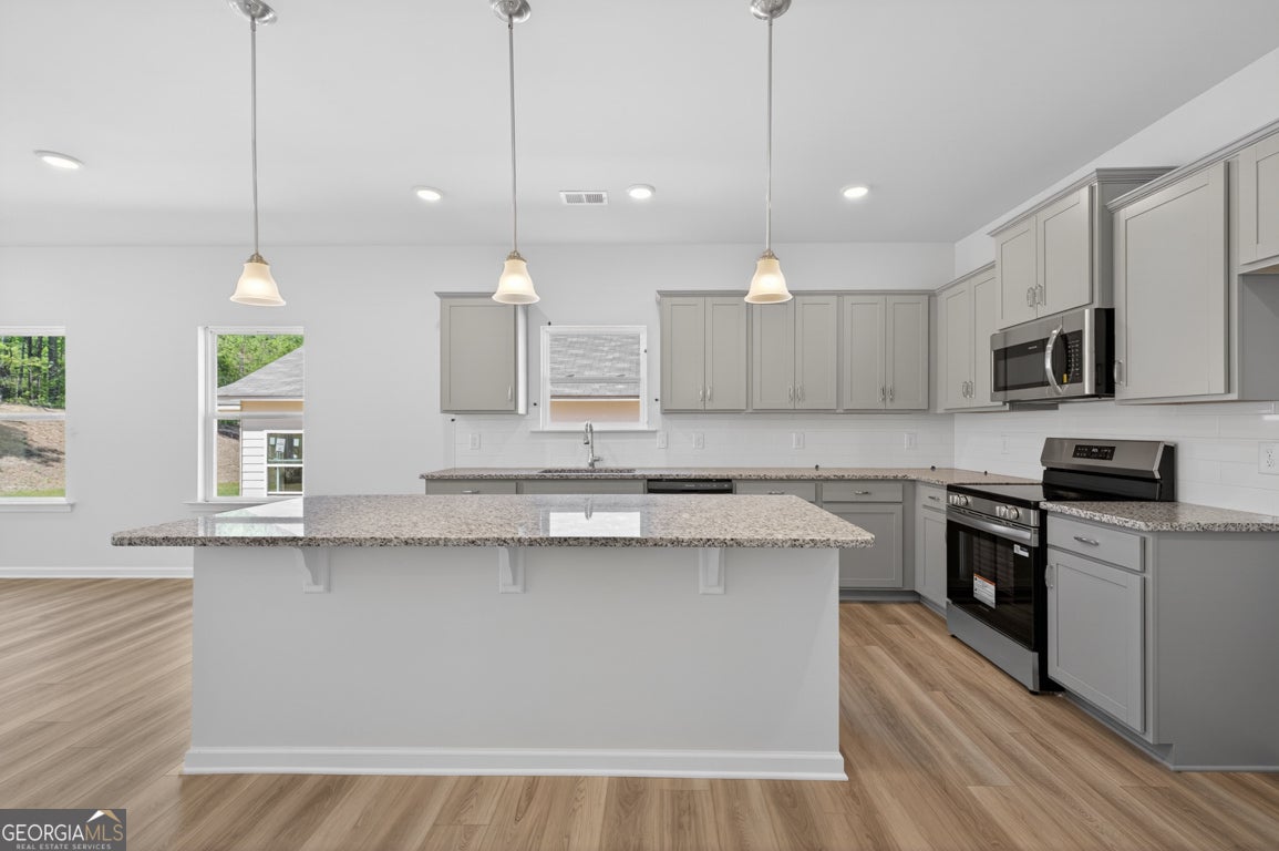 Move in Ready April! The Telfair, by Smith Douglas Homes in Summerfield Place, a beautifully crafted new construction home designed for modern living. Discover the perfect blend of smart design and stunning style From the moment you enter the welcoming foyer, you're greeted by an airy open-concept layout ideal for everyday living and entertaining. The island kitchen flows seamlessly into a cozy breakfast area and spacious family room highlighted by a sleek linear fireplace. Step outside to a covered patio overlooking a private backyard, perfect for relaxing evenings or weekend gatherings. A versatile formal living room offers flexibility to serve as a dining room, home office, or private study. Extra windows have been added in the breakfast nook and family room creating a light-filled home. The luxurious primary suite features a generous walk-in closet, spa-inspired en-suite bath, and a separate water closet for added privacy. Luxury vinyl plank flooring enhances the main living areas with durability and style. Nine foot ceiling heights increase the spaciousness of the home. This move-in ready new construction home delivers comfort, functionality, and timeless appeal-perfect for buyers searching for quality homes near top amenities, schools, and everyday conveniences. Schedule your showing today before this April move-in opportunity is gone! Seller incentives with use of preferred lender. Photos representative of plan not of actual home.
