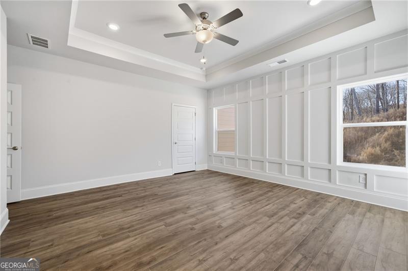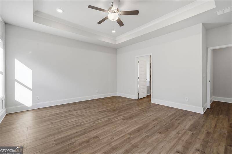 - Interior FeaturesBookcases, Double Vanity, Master On Main Level, Tray Ceiling(s), Walk-In Closet(s)