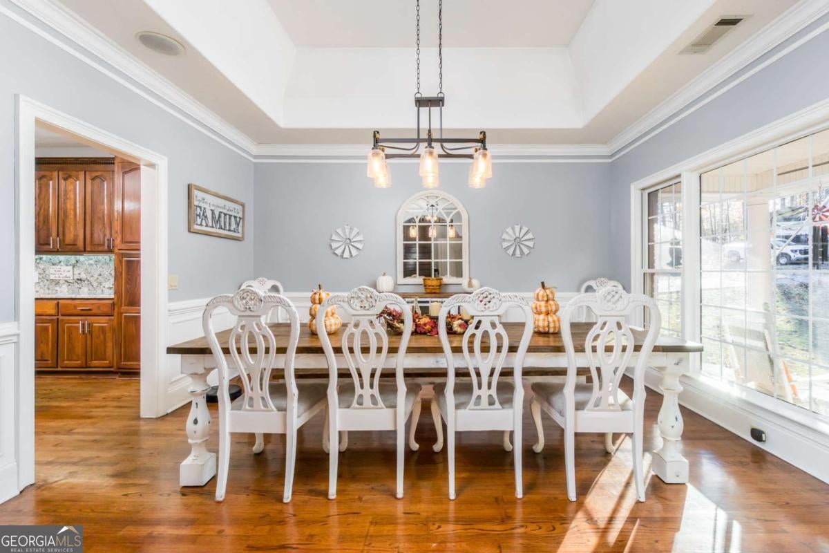 Meticulously maintained four-sided brick executive home offering 5 bedrooms, 4 full bathrooms, and 3.3 private acres in a prime location-perfect for multigenerational living. Conveniently located just 5 minutes from GA-400 and the North Georgia Premium Outlets, with NO HOA. The main level features an open floor plan with 10-foot ceilings, an oversized owner's suite with fireplace, and three bedrooms with two full bathrooms, providing ideal one-level living. Upstairs has a bonus room perfect for another bedroom or home office! The home also has a fully walkable attic storage area off of the upstairs bonus room, which will come in handy for storing all those Christmas decorations. The fully finished in-law suite in the basement offers complete independence with its own kitchen, living room, laundry room, two bedrooms, and full bathroom, plus unfinished workshop space and a solid concrete room ideal for a panic room or secure gun safe. Outdoor living truly shines with a backyard built for entertaining, including a grilling deck, in-ground pool with new pump and cover, and a full outdoor bathroom-no need for guests to go inside. The expansive front yard and driveway provide ample parking for all your toys, including covered RV parking. Recent upgrades include: Brand new architectural roof (2025), Three new 17 SEER Daikin electric HVAC units with built-in humidity control (2021), New concrete around pool (2021), New pool cover (2021), All new lighting and ceiling fans on main level (2023), Clearing/grading for additional parking and RV carport (2024), New refrigerator, dishwasher, and induction cooktop (2023) Ring camera system around entire exterior! This exceptional property offers space, privacy, flexibility, and countless upgrades-a must-see home that won't last long!
