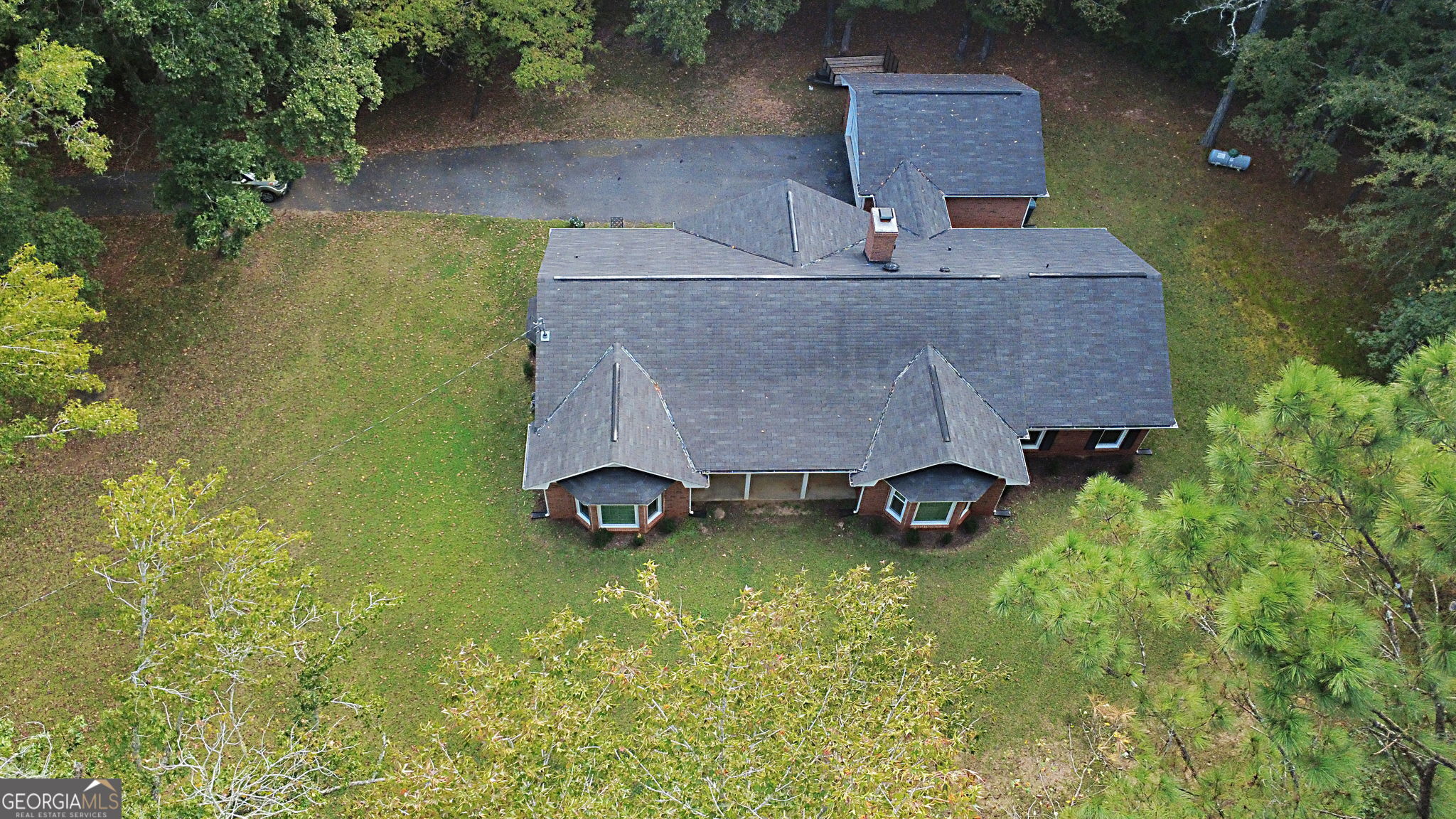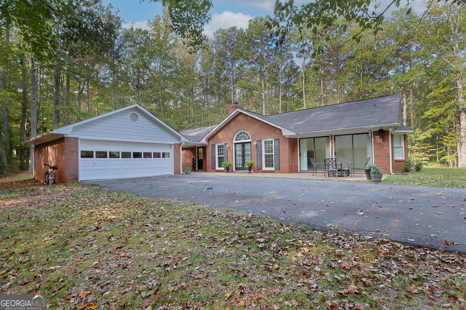 Set on 5 private, wooded acres, this beautifully maintained single-level home offers the perfect blend of peaceful country living and everyday convenience, all within the desirable Harris County school district. Inside, the great room impresses with vaulted ceilings and a classic brick fireplace, creating a warm and inviting focal point. The kitchen functional and timeless, featuring granite countertops, a breakfast bar, pantry, and casual dining area, while a formal dining room provides additional space for gatherings. A bright sunroom adds flexible living space, ideal for a home office, playroom, or hobby area. The home offers three generously sized bedrooms and two updated bathrooms, including a spacious primary suite with two walk-in closets, double vanity, and walk-in tile shower. Notable upgrades include new windows and insulation, Alexa-compatible smart home features, and an in-home generator for added comfort and peace of mind. A covered breezeway connects the detached two-car garage to the home, and two outdoor storage buildings are discreetly tucked away for added functionality. Enjoy quiet, private living just minutes from town with convenient access to I-185 and only 25 minutes from Fort Bending.