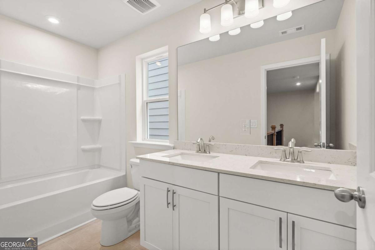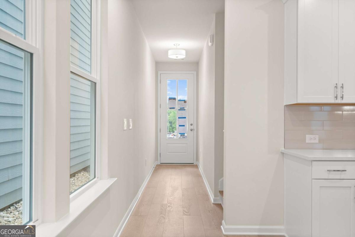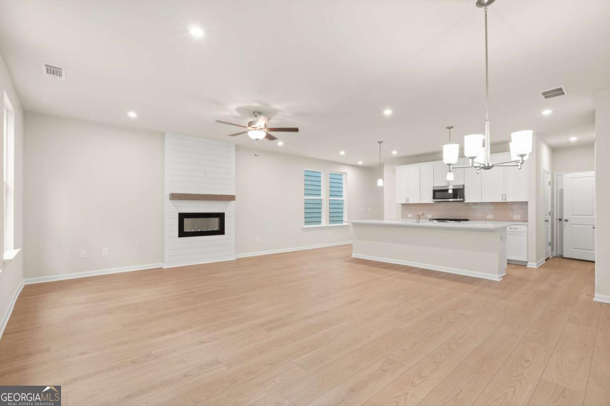 Welcome to The "Stately" Cary A lot 39, a stunning North facing 3-bedroom, 2.5-bath residence in the sought-after GATED Village at Shallowford just steps from pool and clubhouse. This move-in-ready home spans 2,008 sq ft, combining elegance with practicality. The open layout invites you into a bright foyer leading to a gourmet kitchen with 10 FT island, 42" cabinets, gleaming granite countertops, and top-of-the-line stainless-steel appliances. Relax in the cozy living room, complete with a charming shiplap fireplace and 9 FT ceilings throughout the main level, or entertain guests in the adjoining dining room with easy access to the private patio. Retreat to the oversized primary suite, offering a luxurious extended tile shower and a walk-in closet, providing a peaceful escape from the secondary bedrooms. Enjoy the open railing staircase that adds a feeling of light and spaciousness and oak treads on the stairs enhance the sophisticated ambiance. Set within the ONLY gated community with a pool and clubhouse in Kennesaw, enjoy quality amenities and proximity to excellent schools. With its charming exteriors and open floor plans, this home is a true gem. A great investment property! Ask Cyndy Martel-Smith about our rate buy down promotions and flex incentives! Self guided tours available!