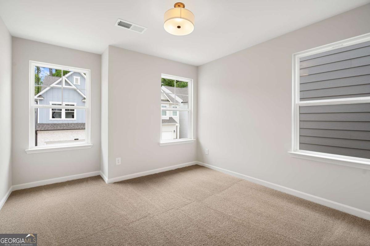 Hello 2026 incredible January buy rate down promo. Welcome to The "Sophisticated" South facing Marion B lot 66, a stunning 3-bedroom, 2.5-bath residence in the sought-after GATED Village at Shallowford just steps from pool and clubhouse. This move-in-ready home spans 2,008 sqft, combining elegance with practicality. The open layout invites you into a bright foyer leading to a gourmet kitchen with a large island, 42" cabinets, gleaming Quartz countertops, and top-of-the-line stainless-steel appliances. Relax in the cozy living room, complete with a charming shiplap fireplace and 9 FT ceilings throughout the main level, or entertain guests in the adjoining dining room with easy access to the private patio. Retreat to the oversized primary suite, offering a luxurious extended tile shower and a walk-in closet, providing a peaceful escape from the secondary bedrooms. Enjoy the open railing staircase that adds a feeling of light and spaciousness and oak treads on the stairs enhance the sophisticated ambiance. Set within the ONLY gated community with a pool and clubhouse in Kennesaw, enjoy quality amenities and proximity to excellent schools. With its charming exteriors and open floor plans, this home is a true gem. This home includes a fully gated backyard, refrigerator, washer/dryer and blinds. A great investment property! Ask Cyndy Martel-Smith about our rate buy down promotions and flexible incentives. Self-guided tours available!